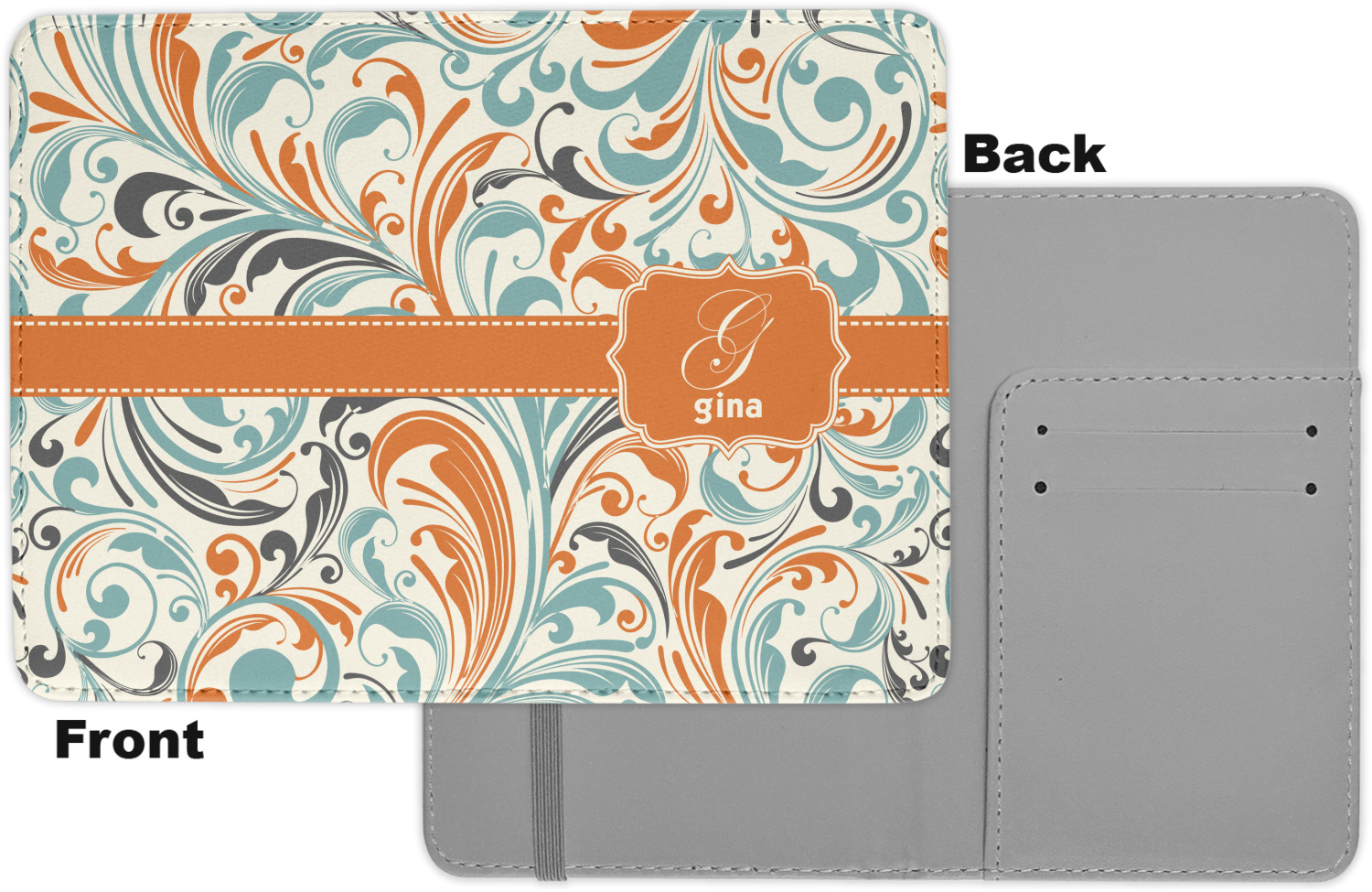 The passport holder has a beautiful inside made of faux leather, while the outside is a smooth slick vinyl like material printed with your personal design.