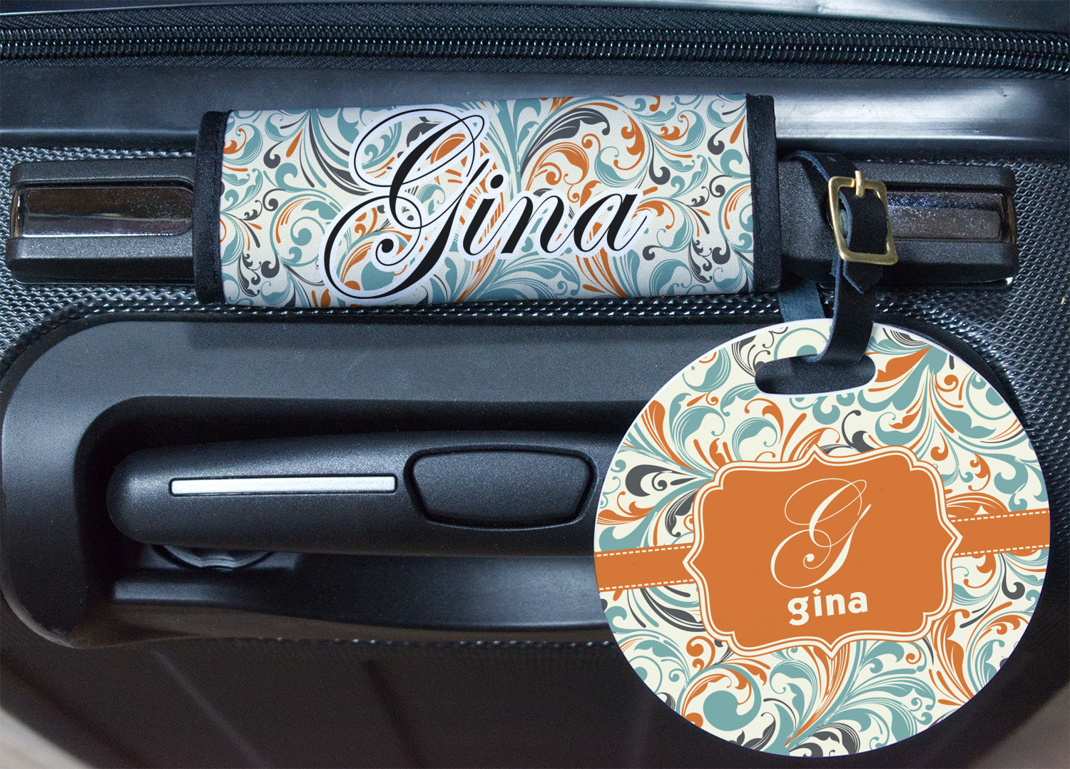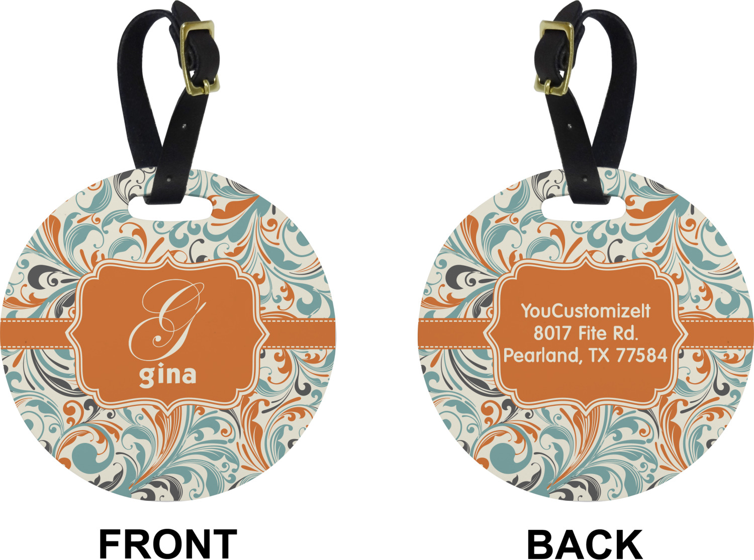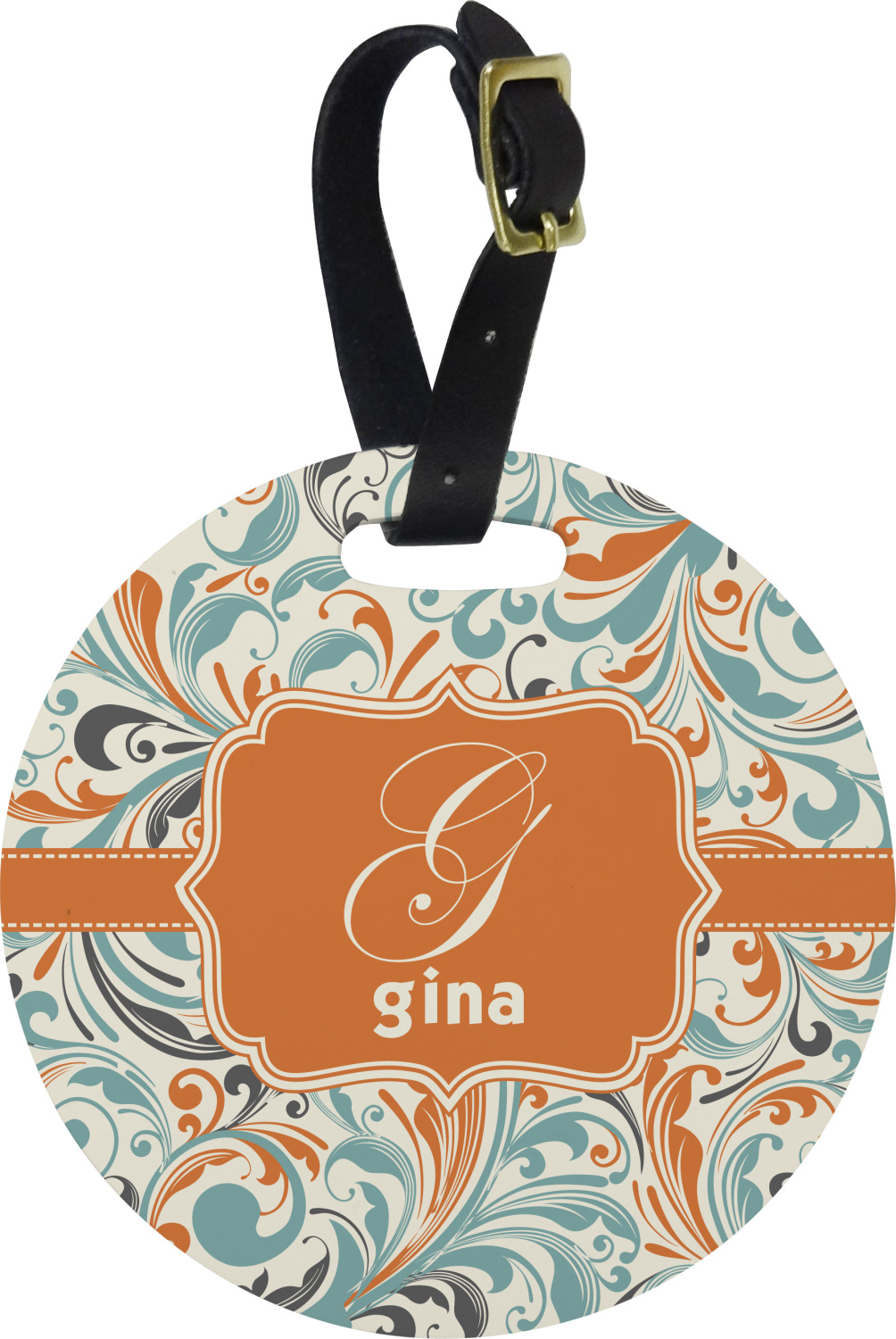 | SKU | mi-round-luggage-tag+Orange-Blue-Leafy-Swirls |