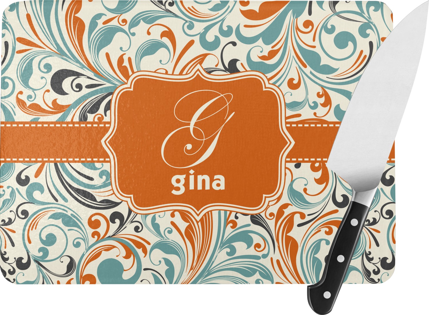| SKU | mi-rect-cutting-board+Orange-Blue-Leafy-Swirls |
