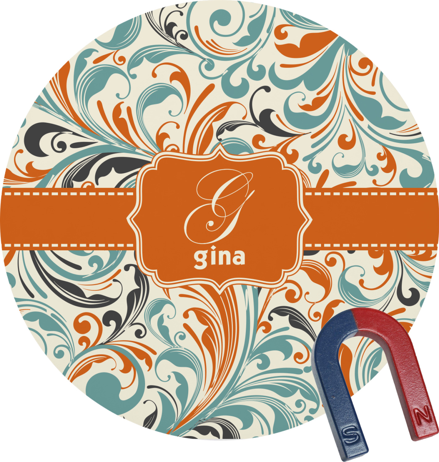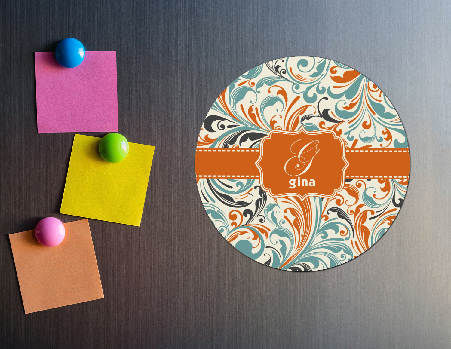 | SKU | mi-round-magnet+Orange-Blue-Leafy-Swirls |