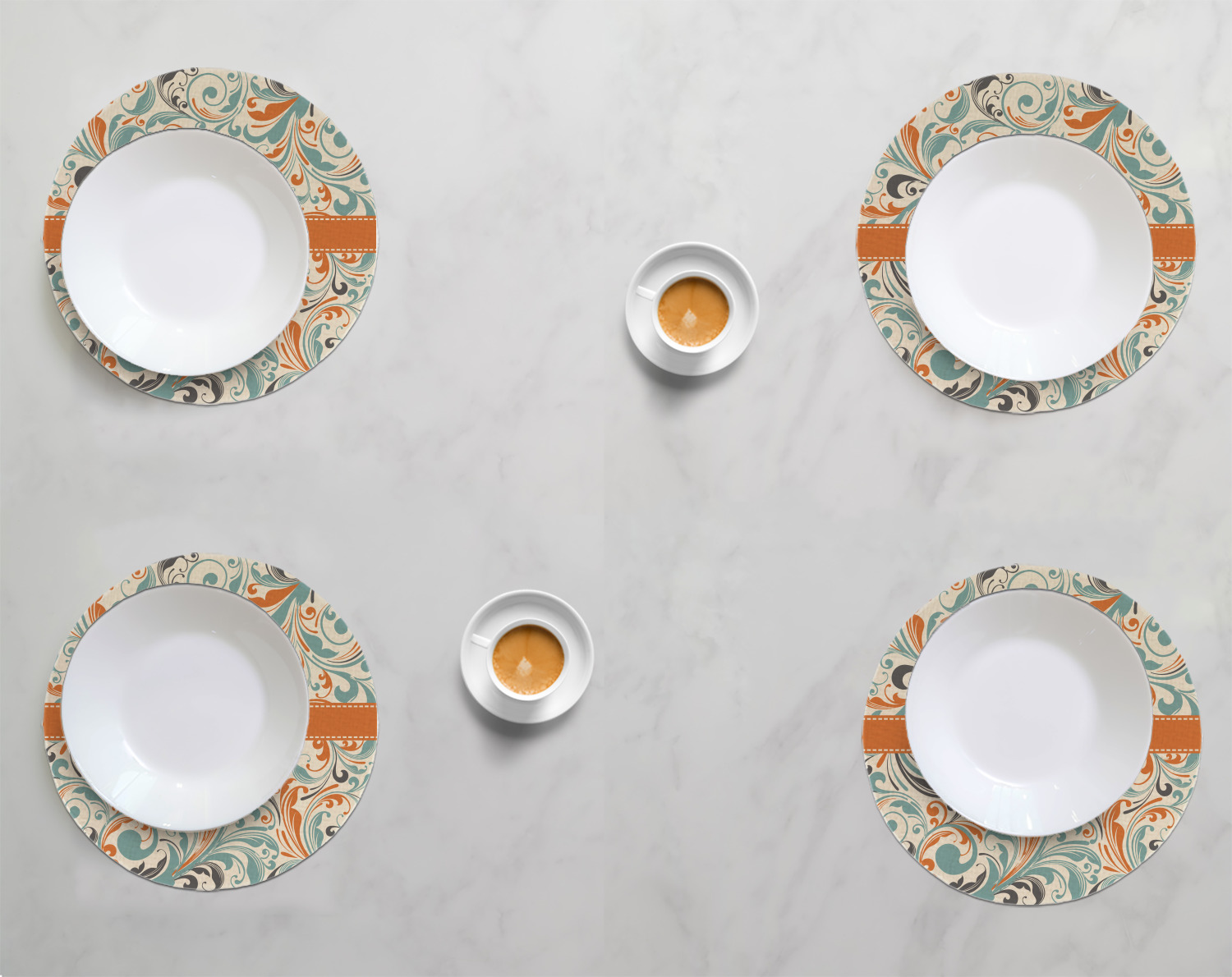 Inspired by the grace and beauty of leaves, this leafy swirls design is simply gorgeous. The beautiful orange and blue colors of this design were actually inspired by my favorite floral design. The orange and blue along with a splash of gray on a tan background create a gorgeous set of colors.