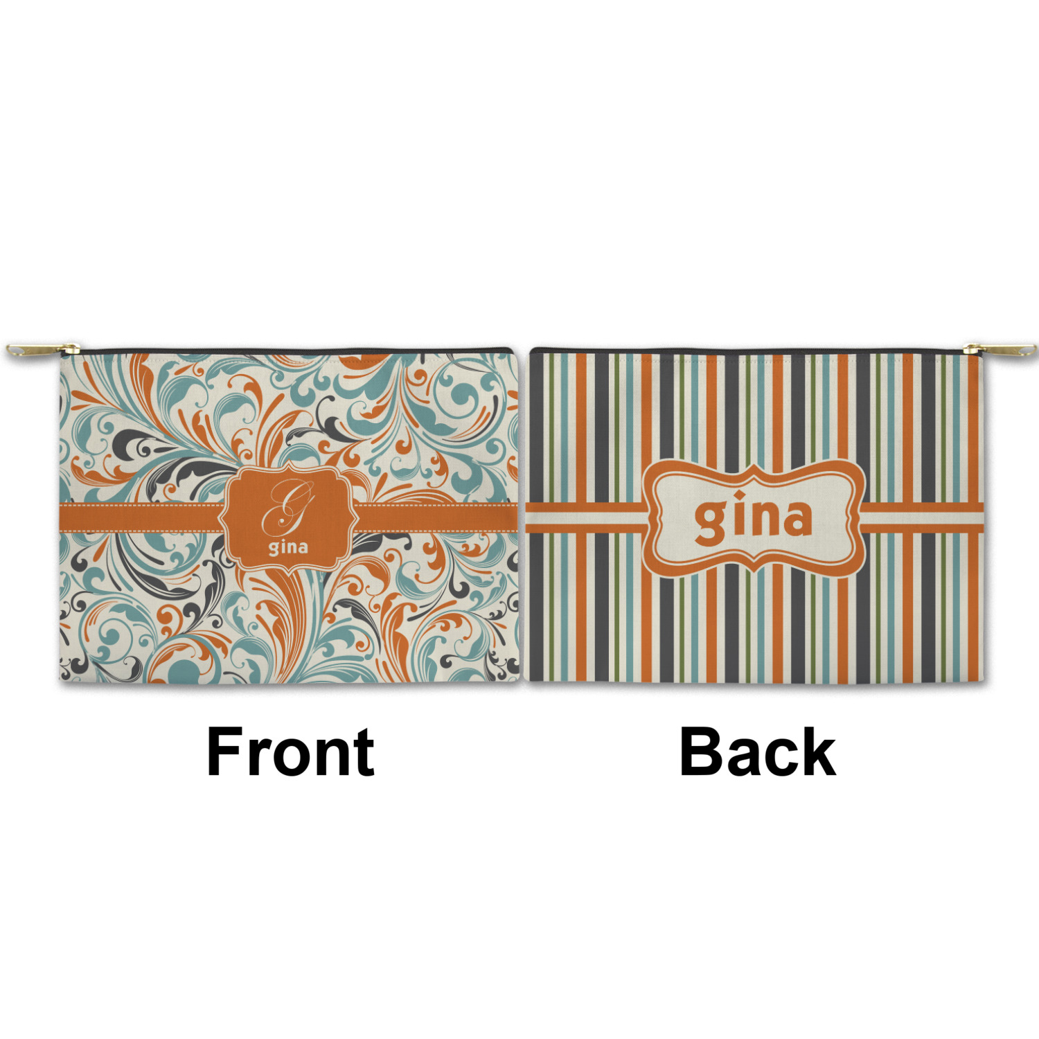 You can design both the front and the back of the pouch - same design, two complementary designs or two totally different designs - the choice is yours! We offer many different personalization styles i.e. name, name & initial, monograms - so the choice to personalize is also yours.