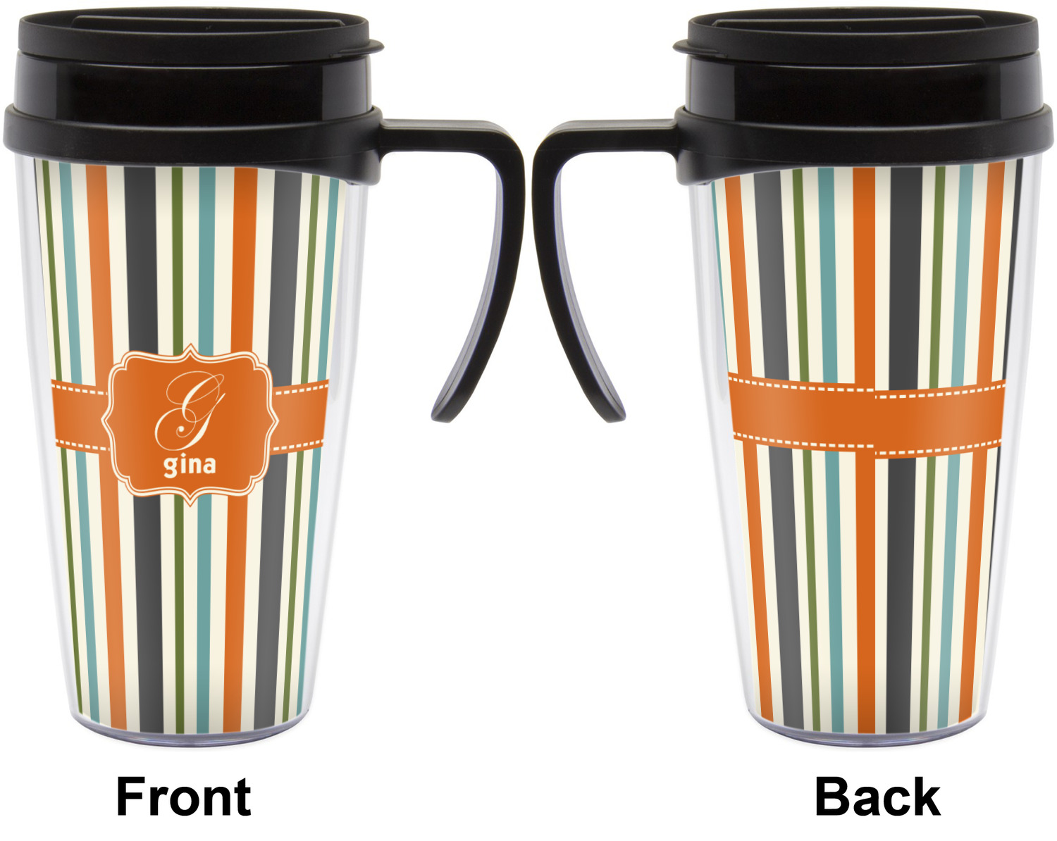 These thermal mugs are free of BPA, and insulated, to keep your drinks hot or cold. The black, snap on lid and the slider for sipping allows you to conveniently sip your drink without constantly worrying about a disastrous spill. We offer this mug with and without a handle, to better suit your needs. Each custom thermal mug holds up to 16 ounces of liquid and displays your customization on all sides on premium gloss media inserts.