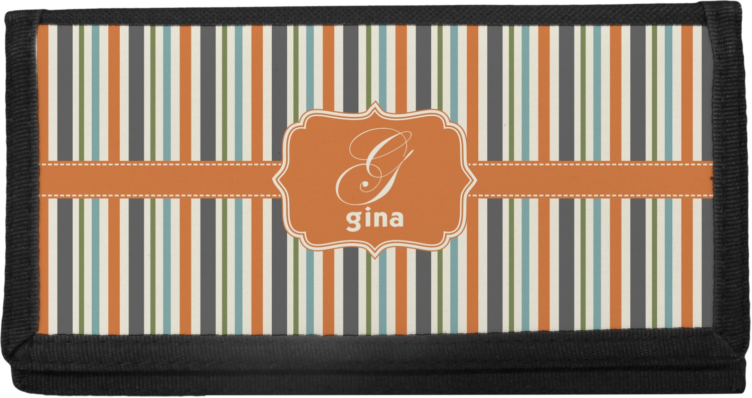 The checkbook cover is made of a durable canvas and the front flap is decorated with a vibrant design of your choosing. With 4 slots for credit cards or IDs, and 2 compartments for your checkbook register, cash, receipts, business cards, and more; this checkbook cover could easily double as a wallet.