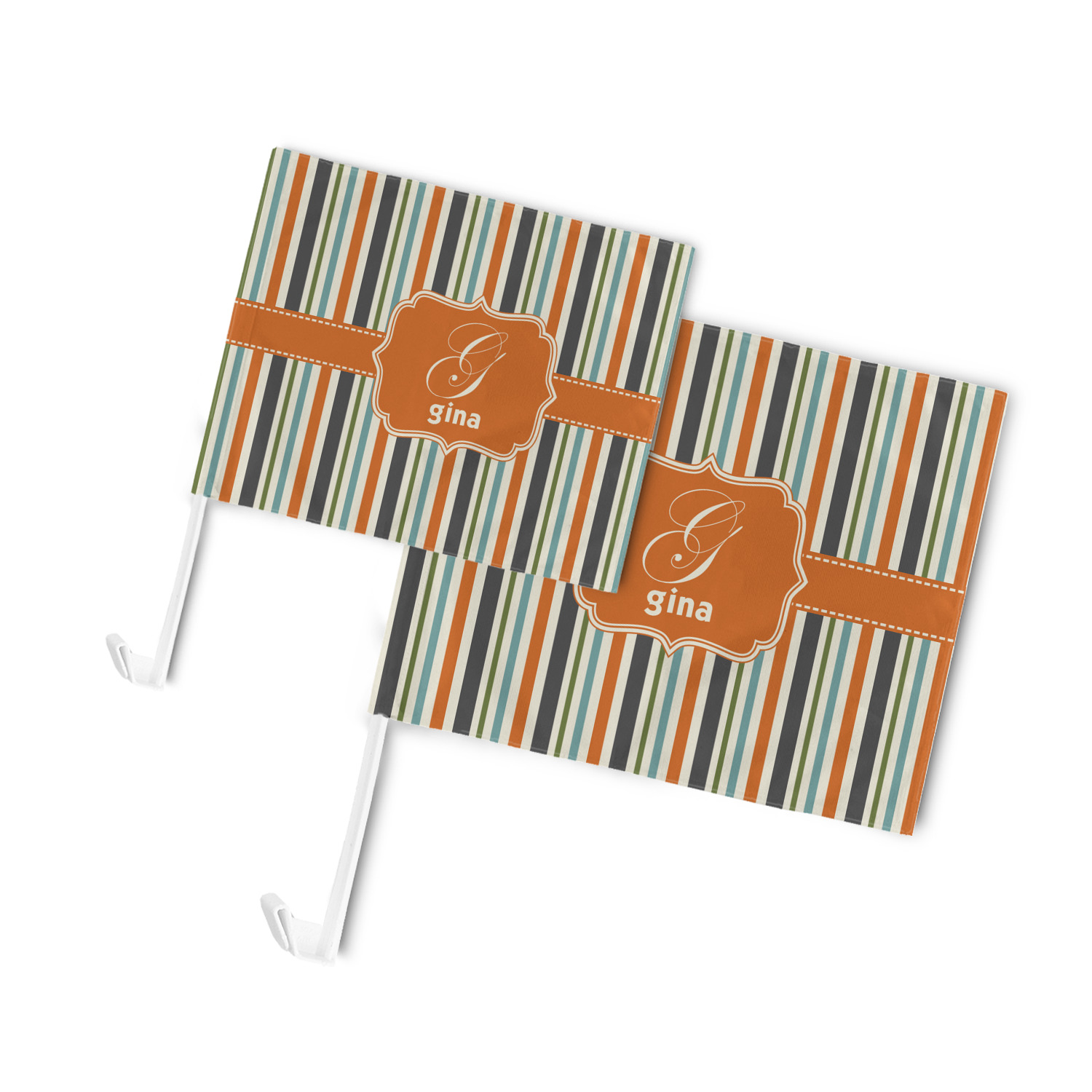 Our personalized flags are made from a durable, yet lightweight cloth that will proudly bear your logo or design of choice, while withstanding the outside elements. We have two size options - 8" x 11" and 11" x 15". Both come with a flag pole which includes a clip that secures the pole to the side window, whether it is rolled up or down. The flags are printed on both sides to display your design from all directions.