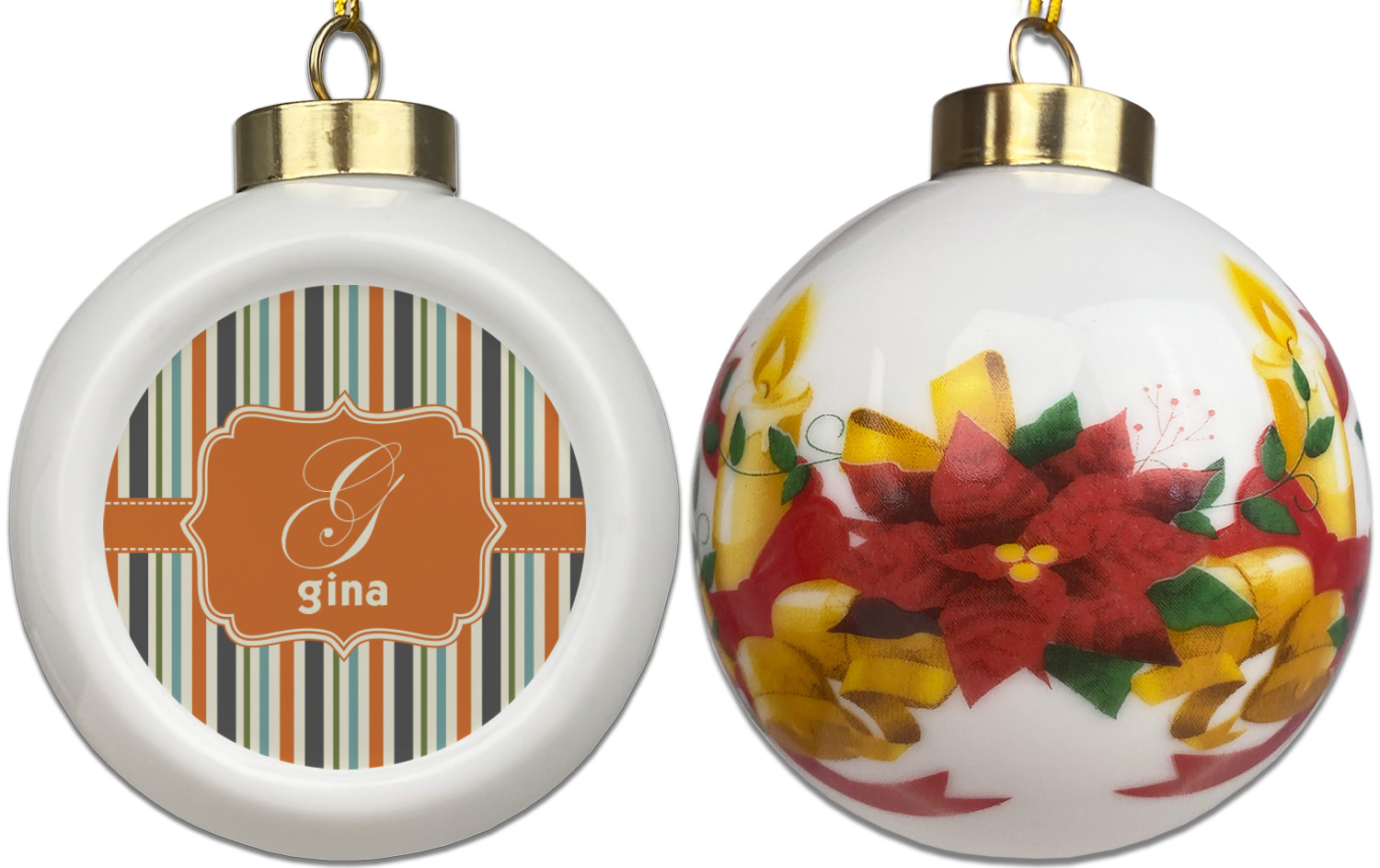 Our Christmas ornaments are a unique ceramic ball shape with a twist as it has a flat face to display your custom design! Select from one of our two design types - Christmas Tree or Poinsettia Garland - to adorn the curved back of your personal design. Each ornament measures 3H x 2.5W x 2D accompanied with a gold string accent for finishing touches to hang on your beautiful Christmas tree!
