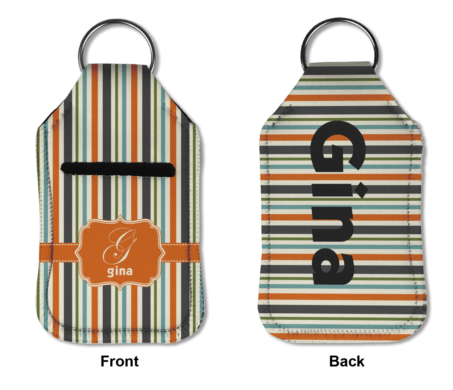 Each hand sanitizer holder comes with its own empty travel-sized, refillable hand sanitizer sure to fit snug in your customized sanitizer case! Our hand sanitizer cases are a durable, yet soft neoprene material sure to last any daily activities or travel agenda. Customize and personalize a hand sanitizer bottle holder with one of our two sizes - small (4.25" x 2.25") or large (5.5" x 2.5"). Each travel sanitizer holder comes with a keyring for attachment on bags, keys, or more!