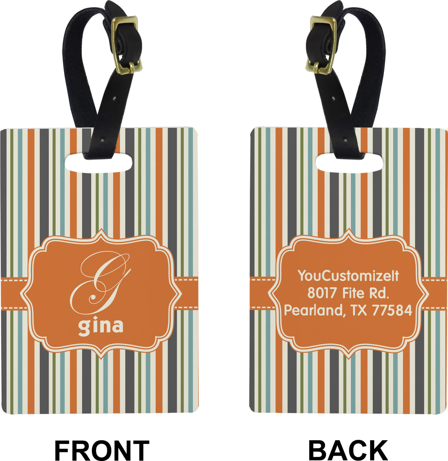 These cute luggage tags are made of a fiber-reinforced, UV-resistant plastic, making them waterproof and durable enough for both everyday use and the rugged adventures of any traveler! A leather strap with holes and a buckle is included with your purchase and can be used to attach your custom luggage tag to any suitcase, backpack, or duffel bag. You can design these travel tags as you wish; your customization will be displayed across the front, while the back will show as little or as much personal information as you want.