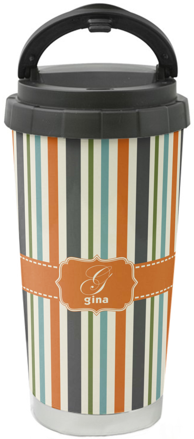 This sleek and tapered 16 oz stainless steel travel cup is a perfect fit in the hand. With the strip of visible stainless steel on the bottom, you'll be feeling classy!