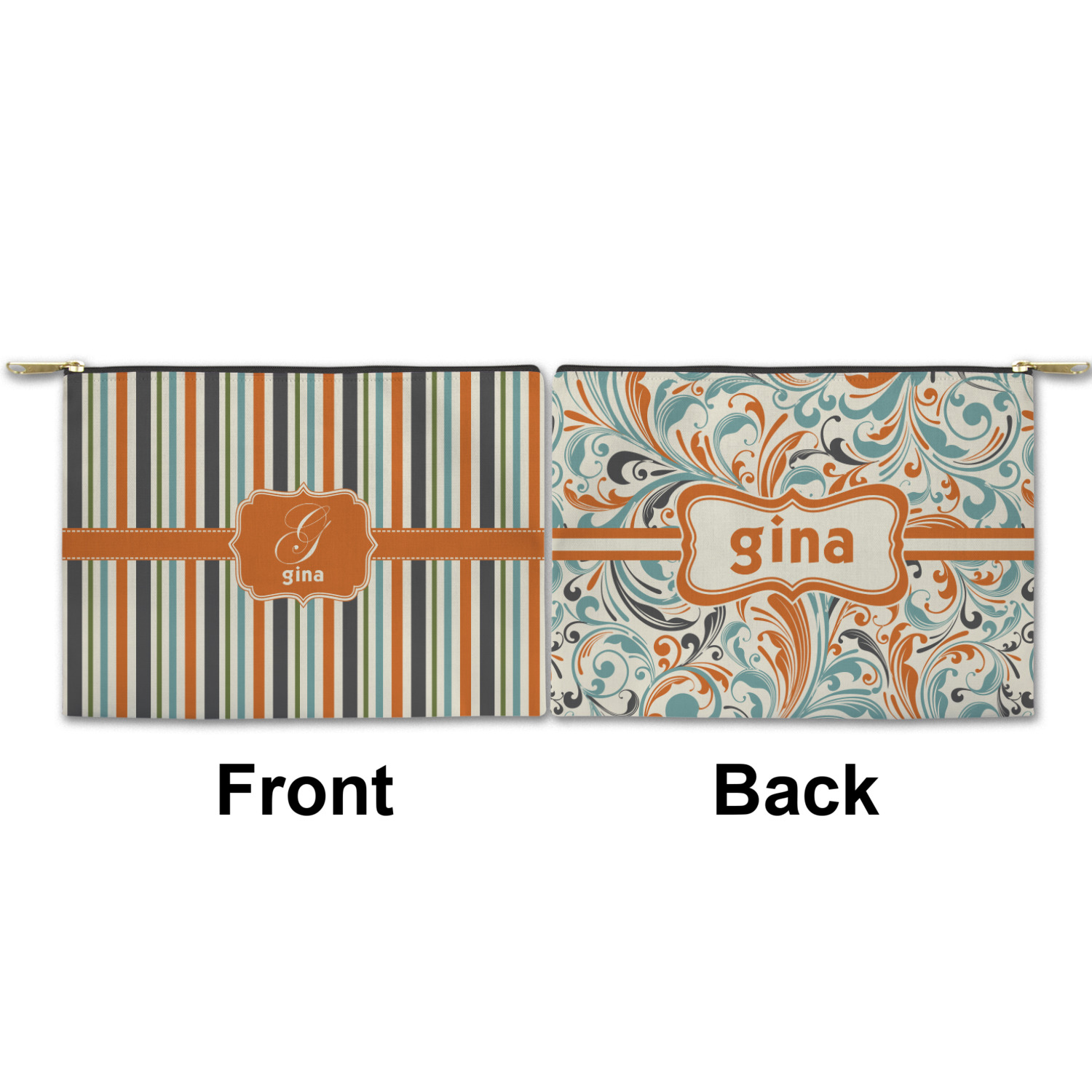 You can design both the front and the back of the pouch - same design, two complementary designs or two totally different designs - the choice is yours! We offer many different personalization styles i.e. name, name & initial, monograms - so the choice to personalize is also yours.