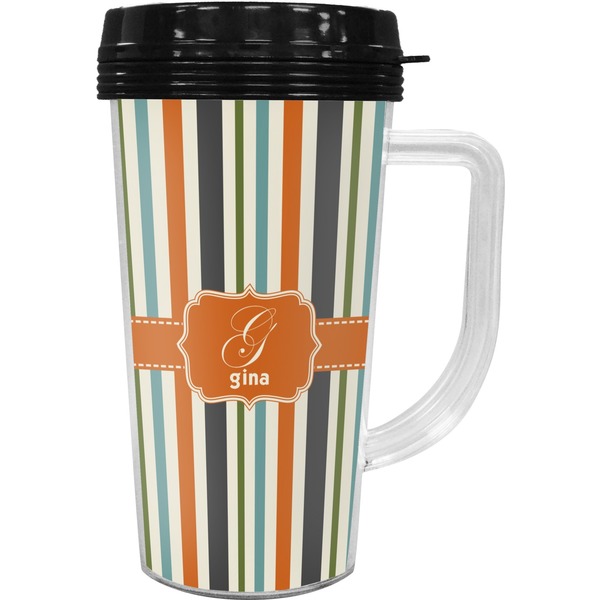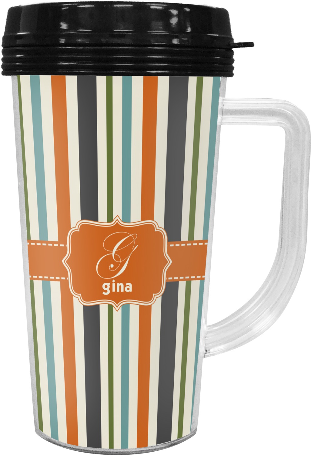These thermal mugs are free of BPA, and insulated, to keep your drinks hot or cold. The black, snap on lid and the slider for sipping allows you to conveniently sip your drink without constantly worrying about a disastrous spill. We offer this mug with and without a handle, to better suit your needs. Each custom thermal mug holds up to 16 ounces of liquid and displays your customization on all sides on premium gloss media inserts.