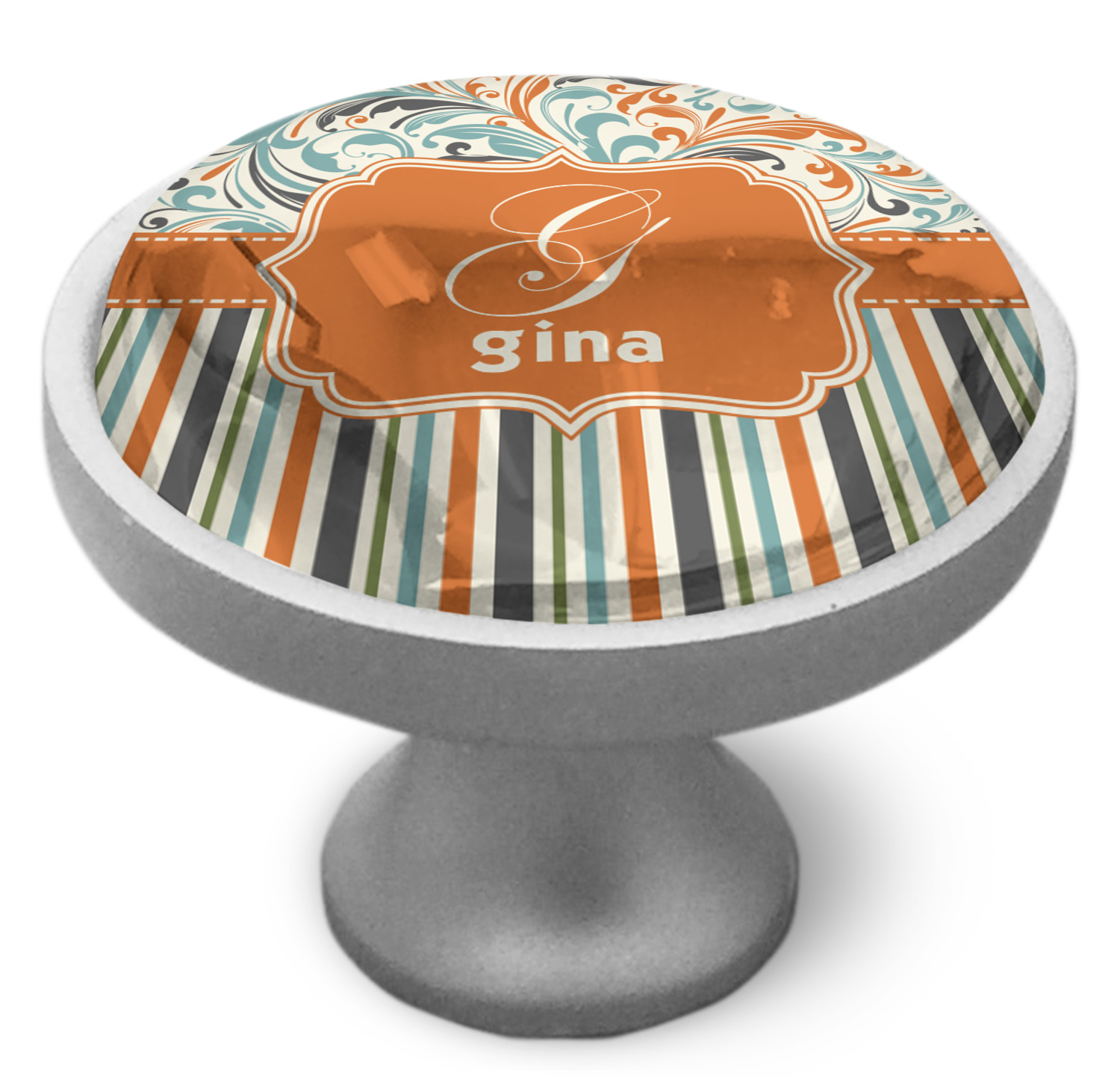 We sell these cabinet pulls in two different colors to better match your room's color scheme. We offer an oil-rubbed bronze base that is black in color, and a satin nickel option, which has a silver color. Your design is displayed across a high gloss vinyl insert that is placed on top of these cabinet handles. We then place a 1 inch thick glass cabochon atop the design, which seals the cabinet knob and makes the colors of your customization stand out. These custom cabinet knobs are approximately 1.3 inches in diameter. Your purchase includes a 1 inch screw that can be used to mount the knob to any cabinet in your home.