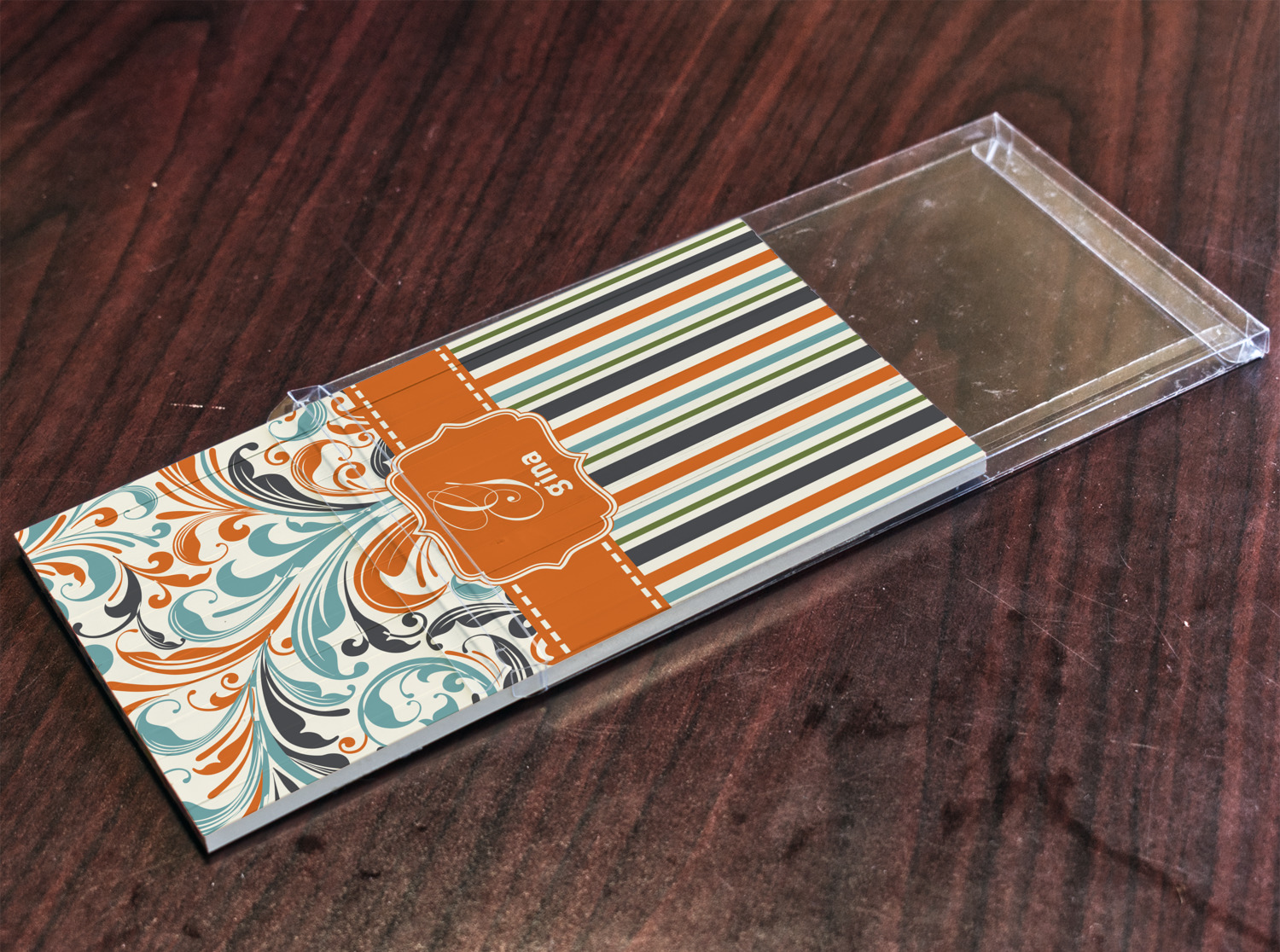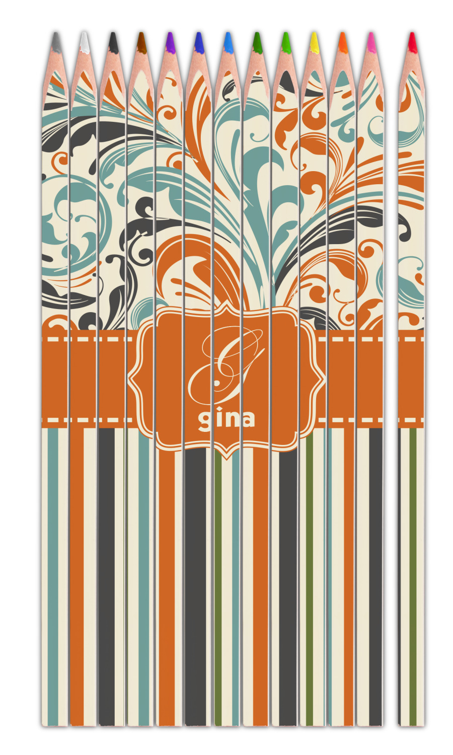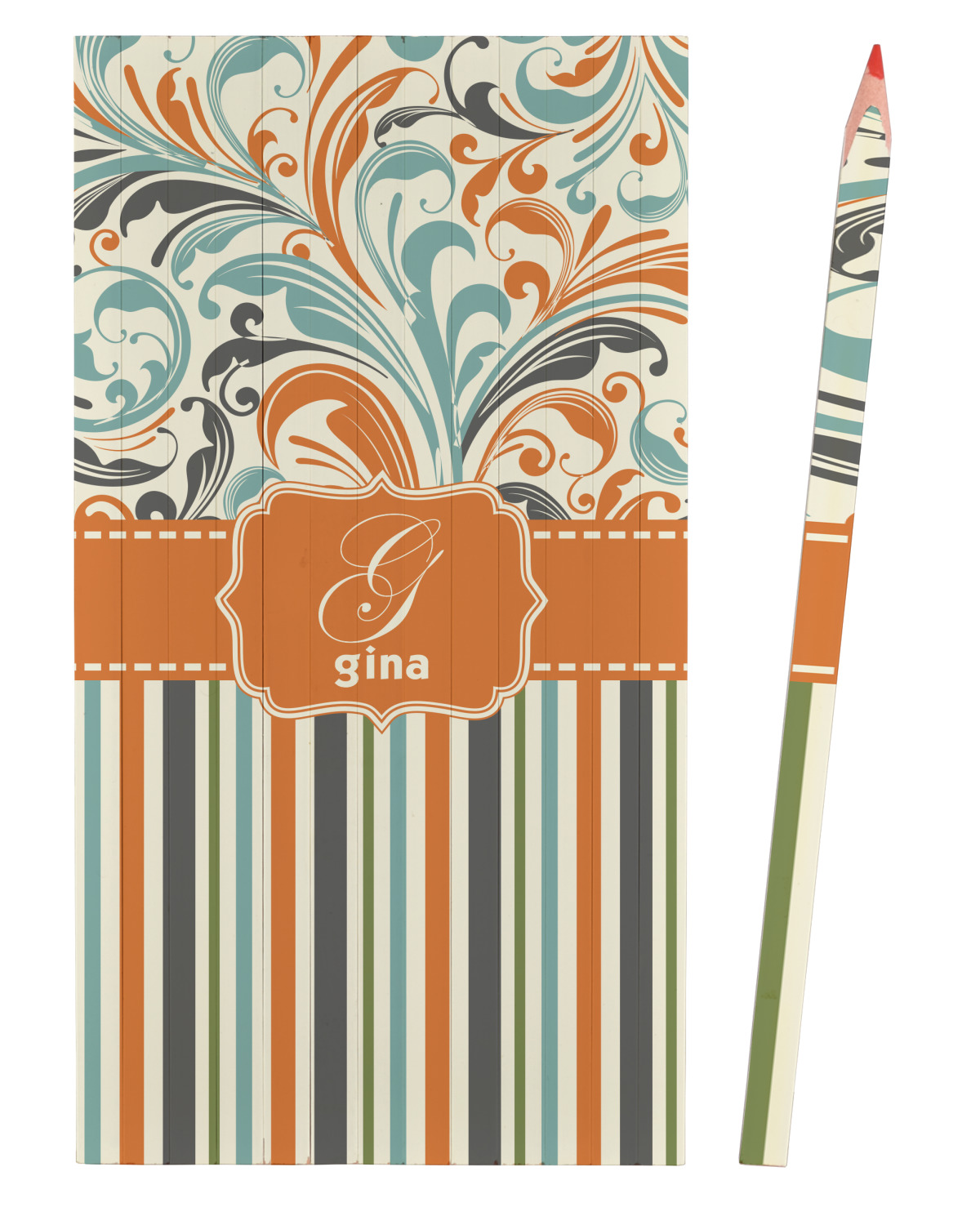 Both leafy swirls and striped designs are beautiful on their own and so we put the three designs together to create our our orange and blue swirls & stripes collection