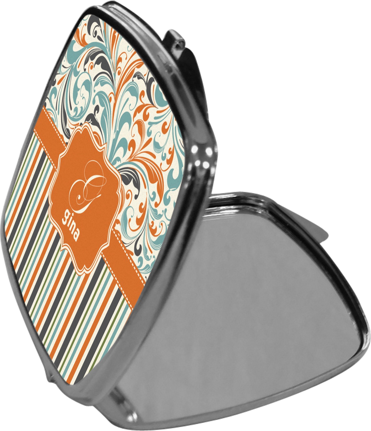 We offer many prints and patterns and many of our patterns are available in 45 different colors. You can personalized the compact mirrors with a name, a monogram or just an initial. We offer several different label, ribbon and font choices. Our customization system lets you create your very own custom & unique product and it lets you preview it before you purchase.