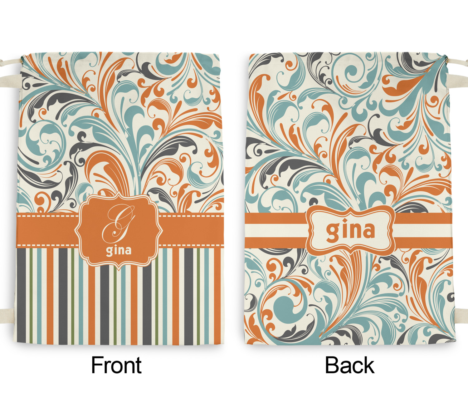 Carry your laundry in style with these customized laundry bags. Available in two sizes, featuring a natural colored woven strap and a cinch cord, these bags hold a lot of clothes or anything else you want to fit in them.