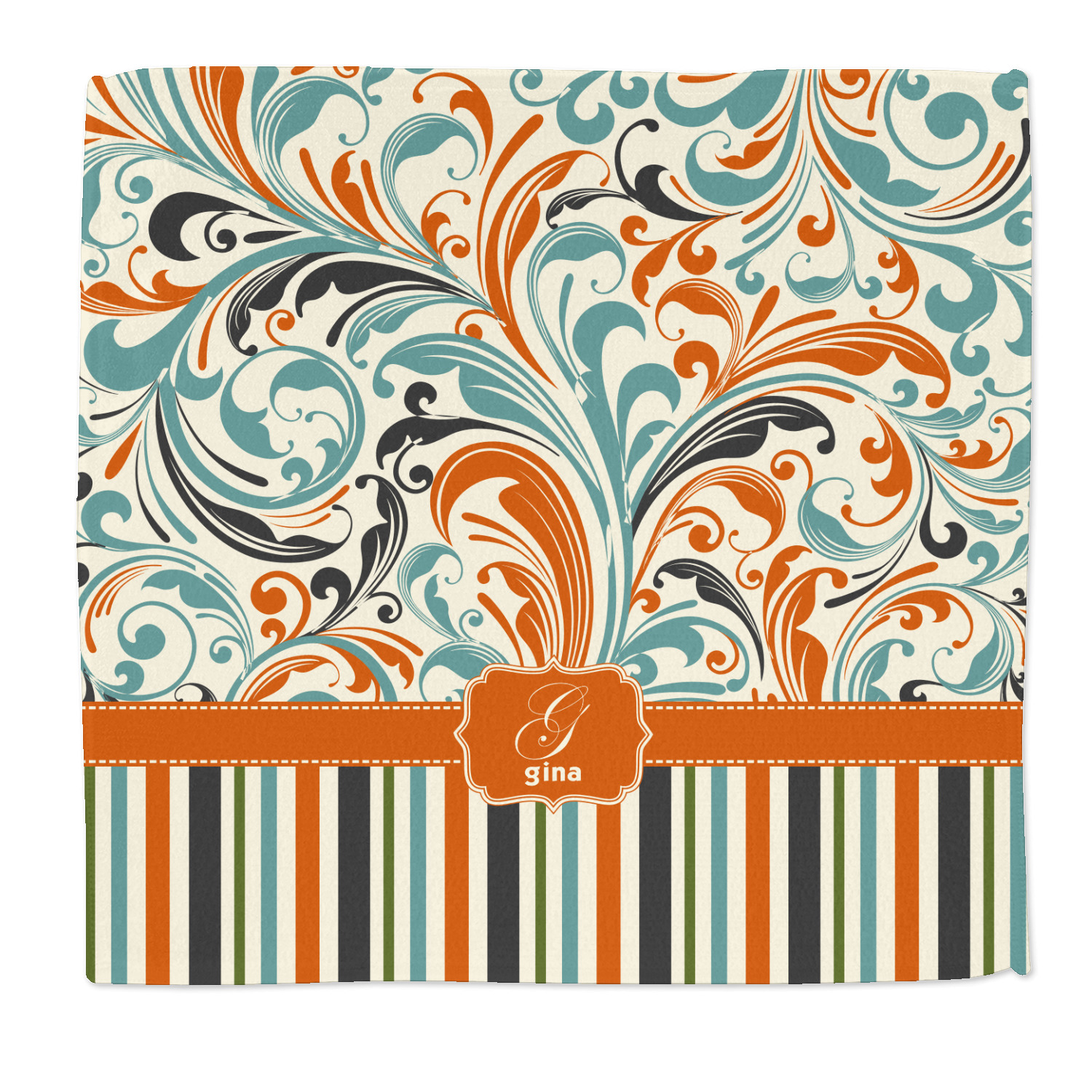 Both leafy swirls and striped designs are beautiful on their own and so we put the three designs together to create our our orange and blue swirls & stripes collection