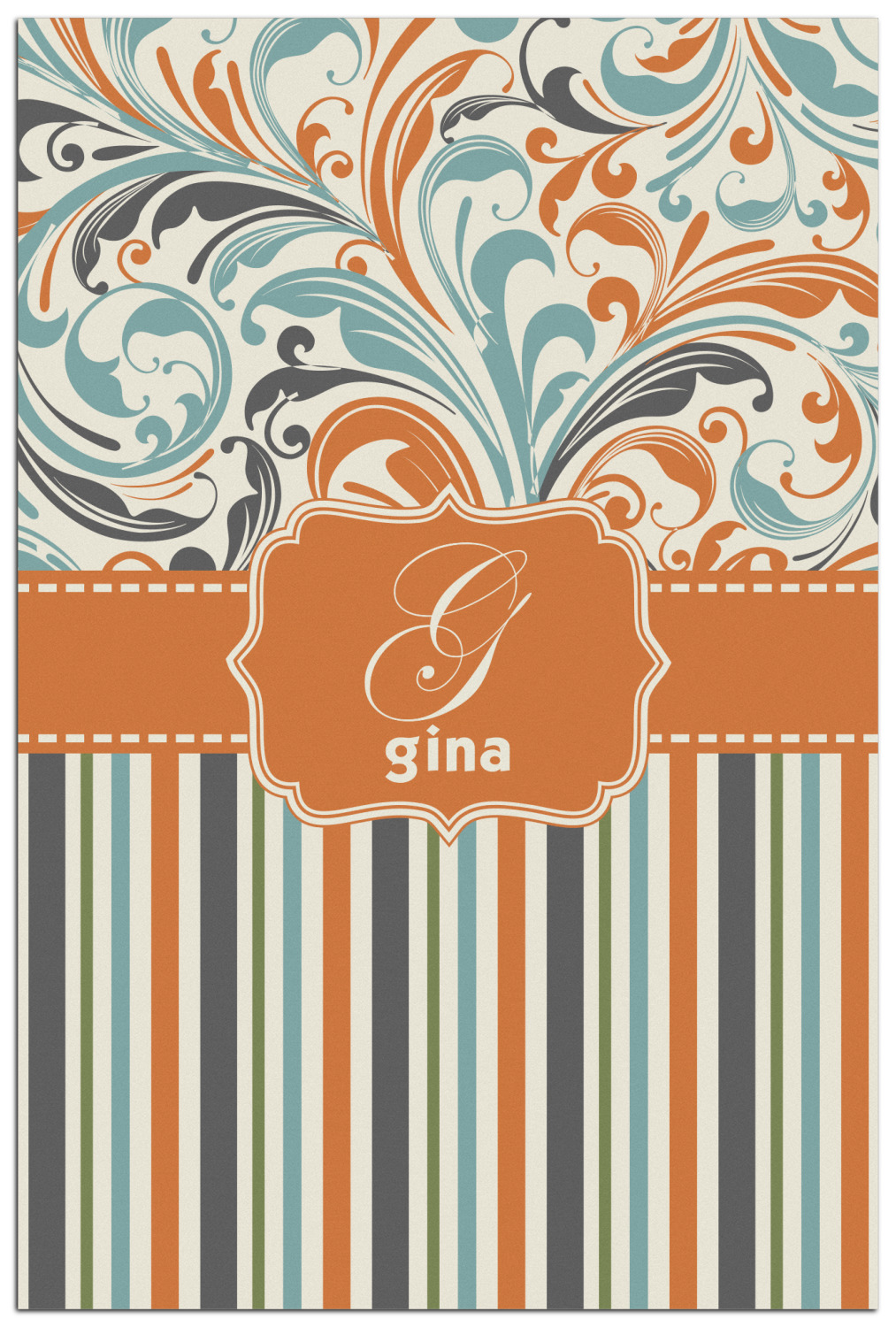 Both leafy swirls and striped designs are beautiful on their own and so we put the three designs together to create our our orange and blue swirls & stripes collection