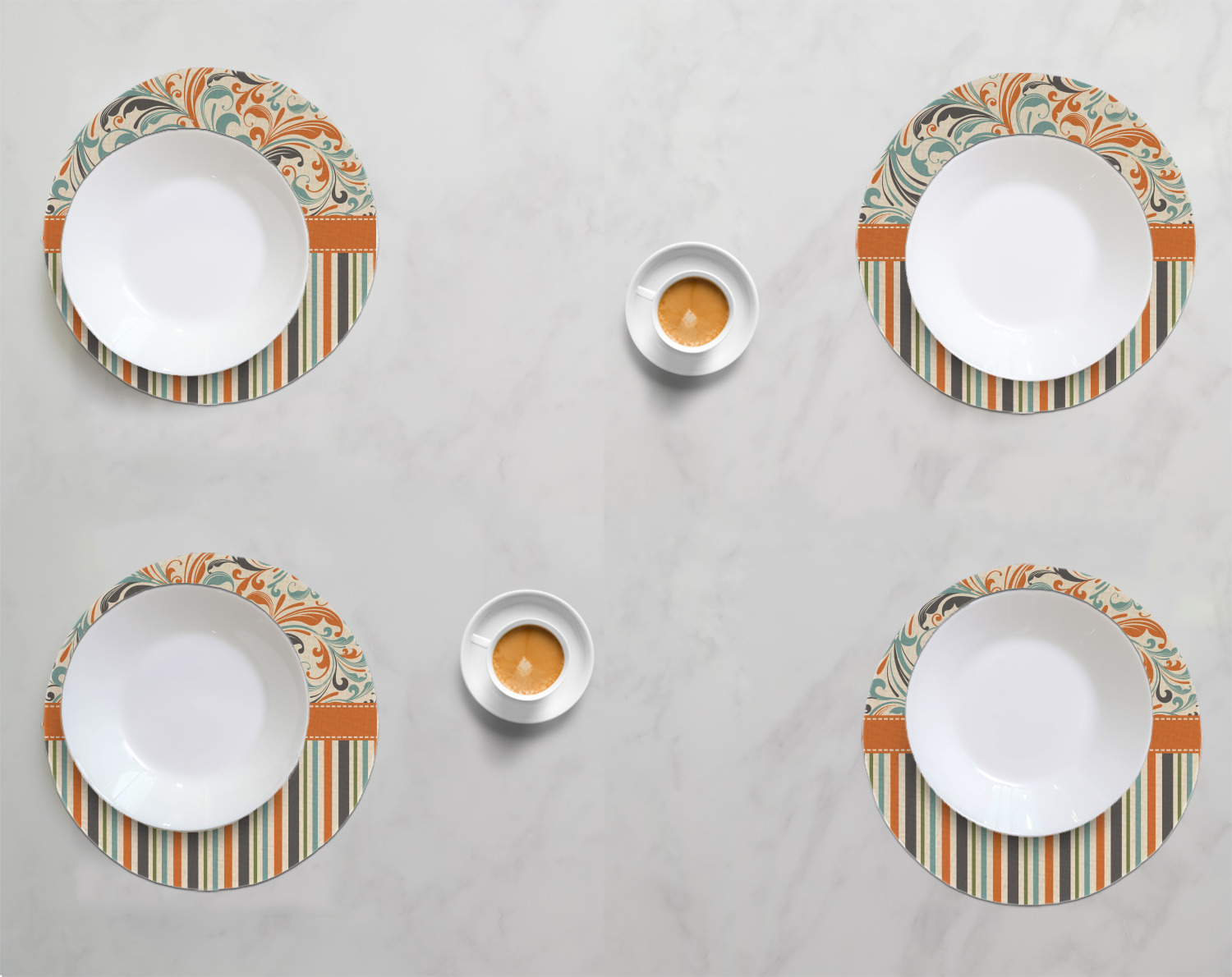 Both leafy swirls and striped designs are beautiful on their own and so we put the three designs together to create our our orange and blue swirls & stripes collection
