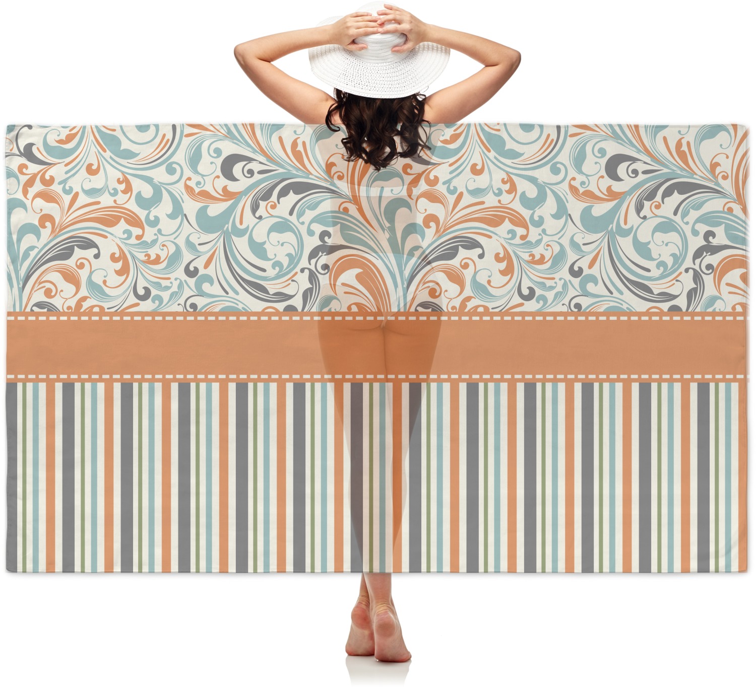 Both leafy swirls and striped designs are beautiful on their own and so we put the three designs together to create our our orange and blue swirls & stripes collection
