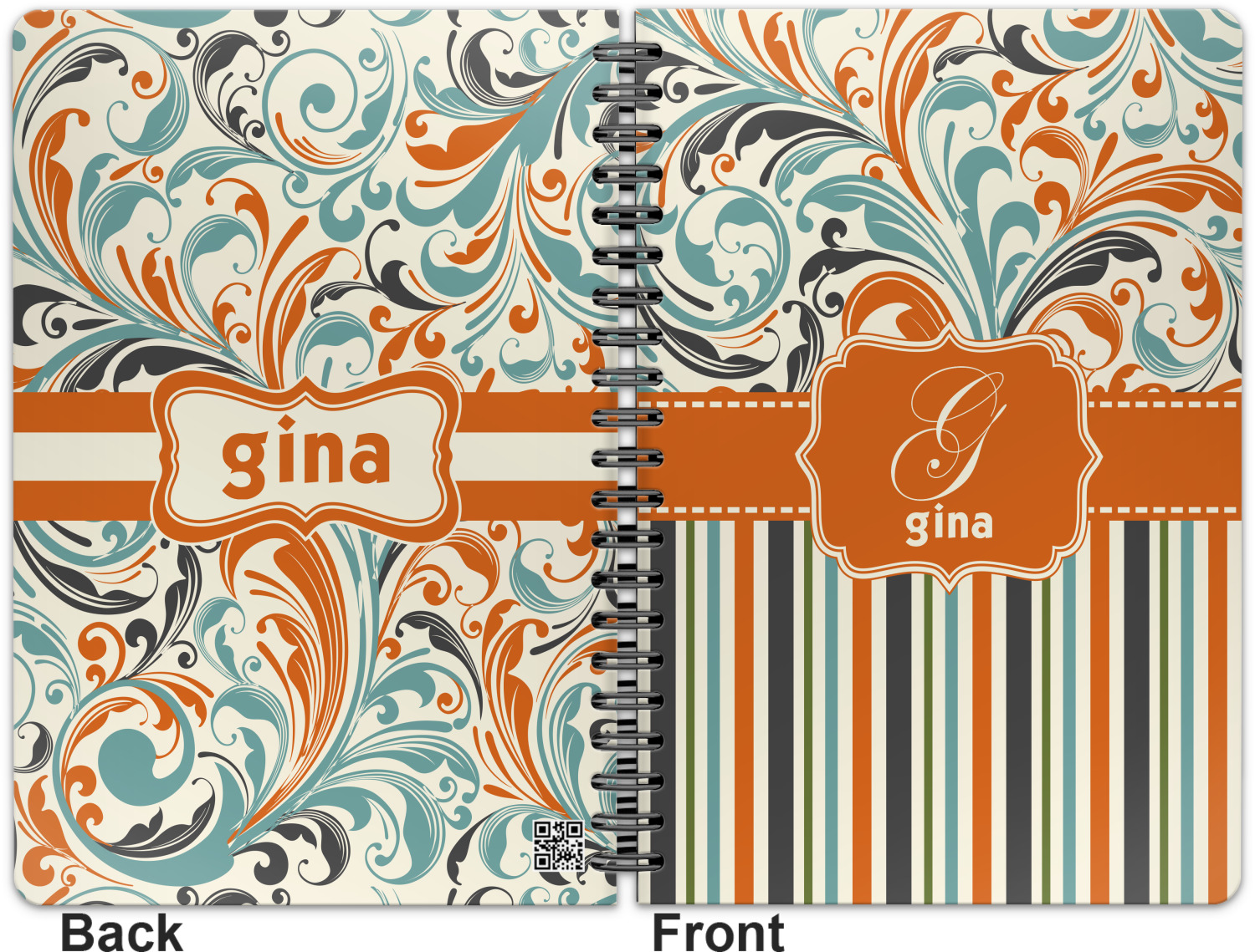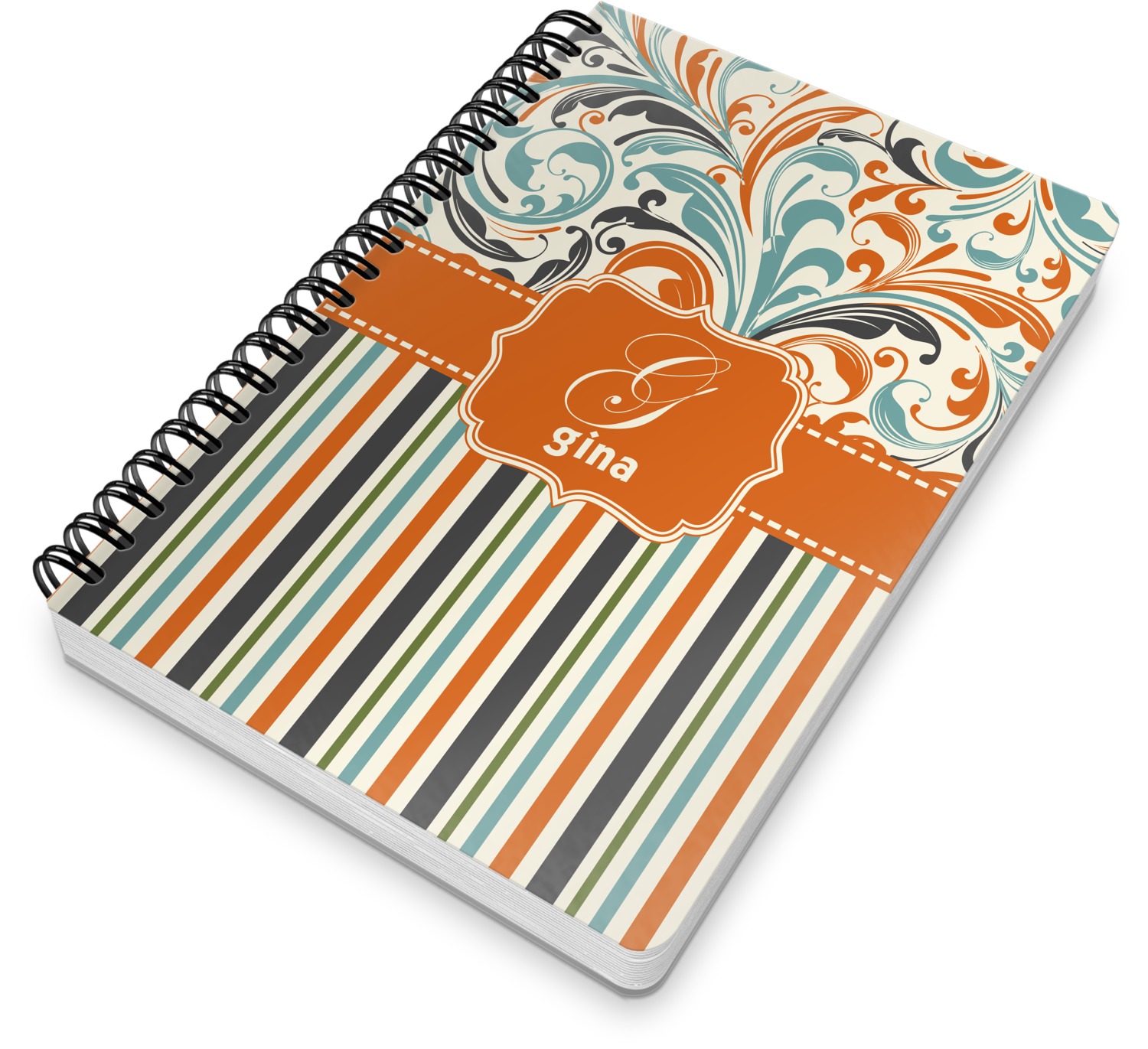 This spiral notebook includes 75 sheets of thick, ruled paper. The front and back of this custom notebook is made of a robust, laminate, plastic covering. We print your personalization on these two panels, underneath a glossy finish, which emphasizes the colors of your design. The two panels and the sheets of paper are held together by a sturdy, black coil. The paper within your bound notebook is perforated for easy, clean tearing.