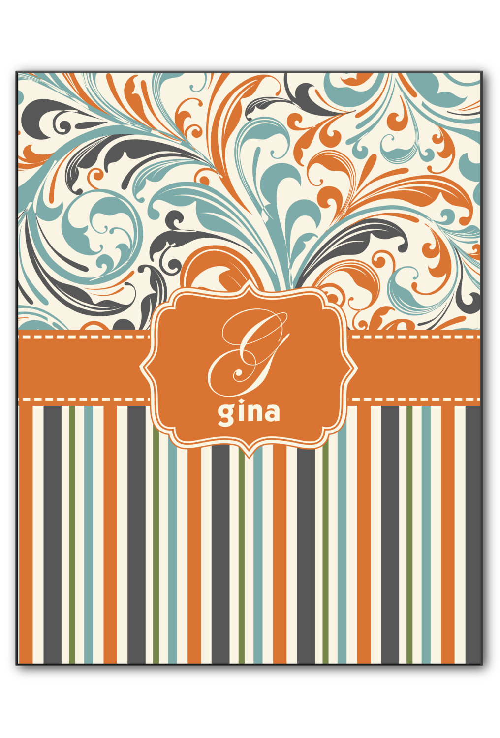 Both leafy swirls and striped designs are beautiful on their own and so we put the three designs together to create our our orange and blue swirls & stripes collection
