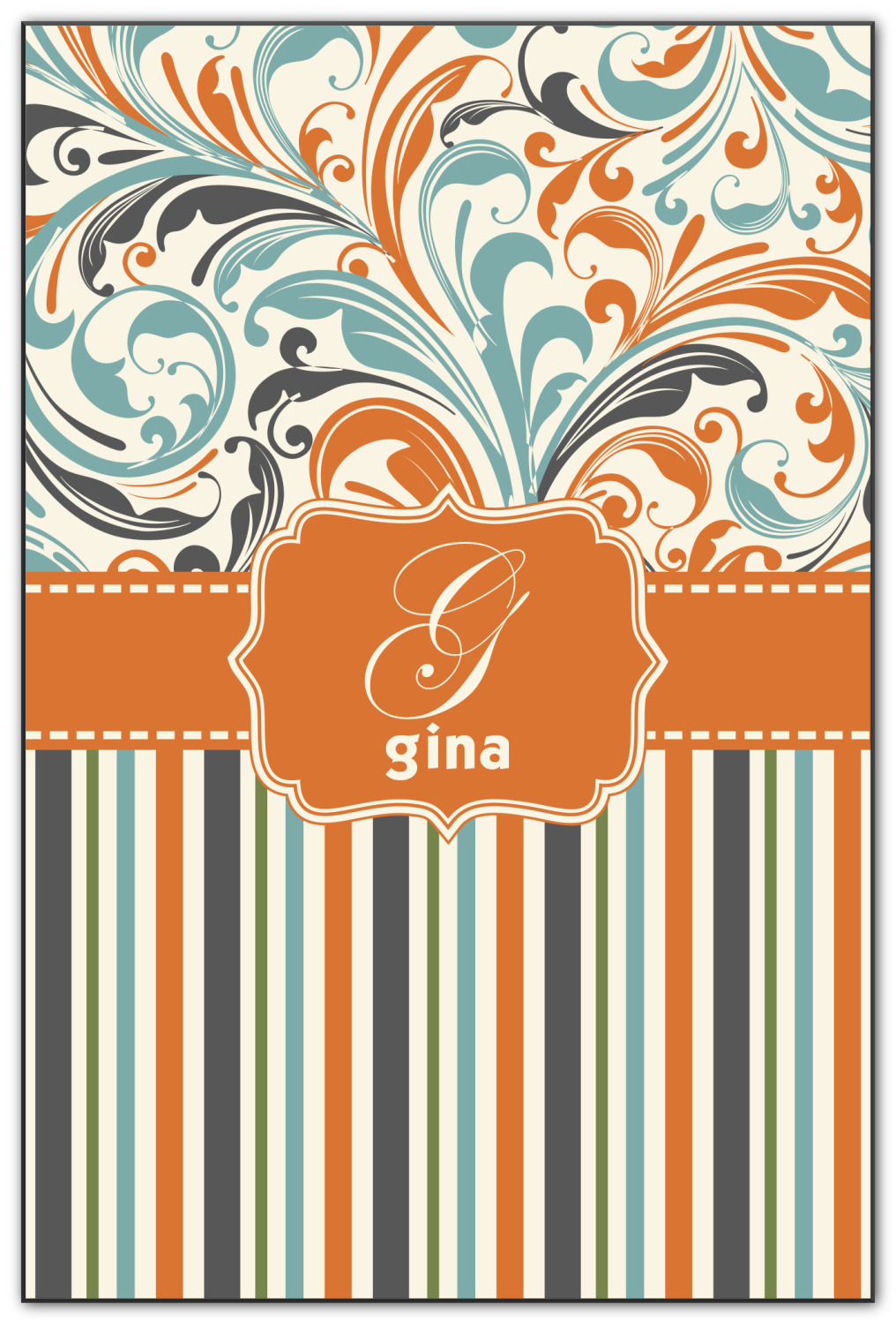 Both leafy swirls and striped designs are beautiful on their own and so we put the three designs together to create our our orange and blue swirls & stripes collection