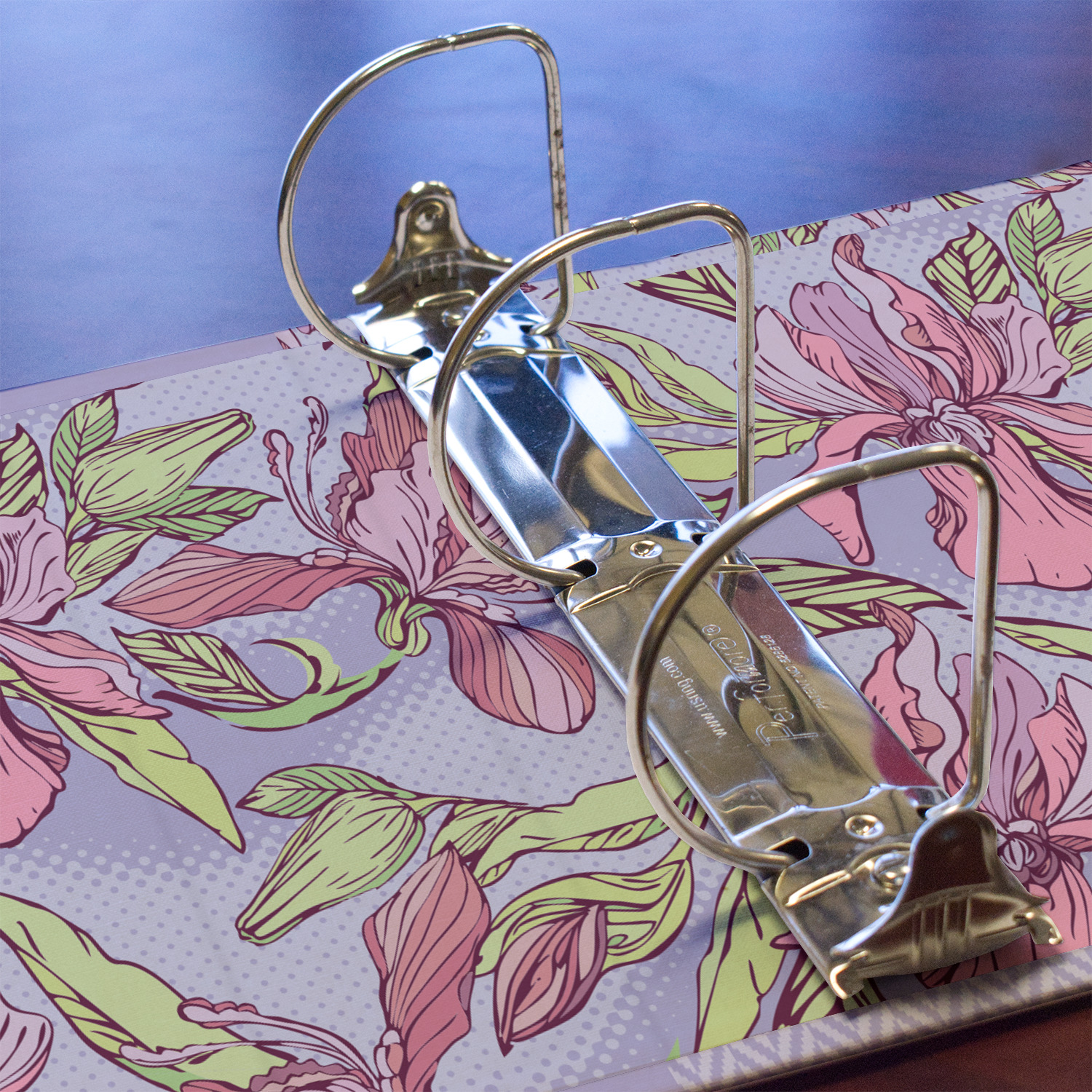 Made from a sturdy cardboard base with a full high quality canvas textured vinyl wrap with the design of your choice. Unlike our standard 3-ring binder with the full wrap design your artwork wraps from the front and back and into the inside of the binder.
