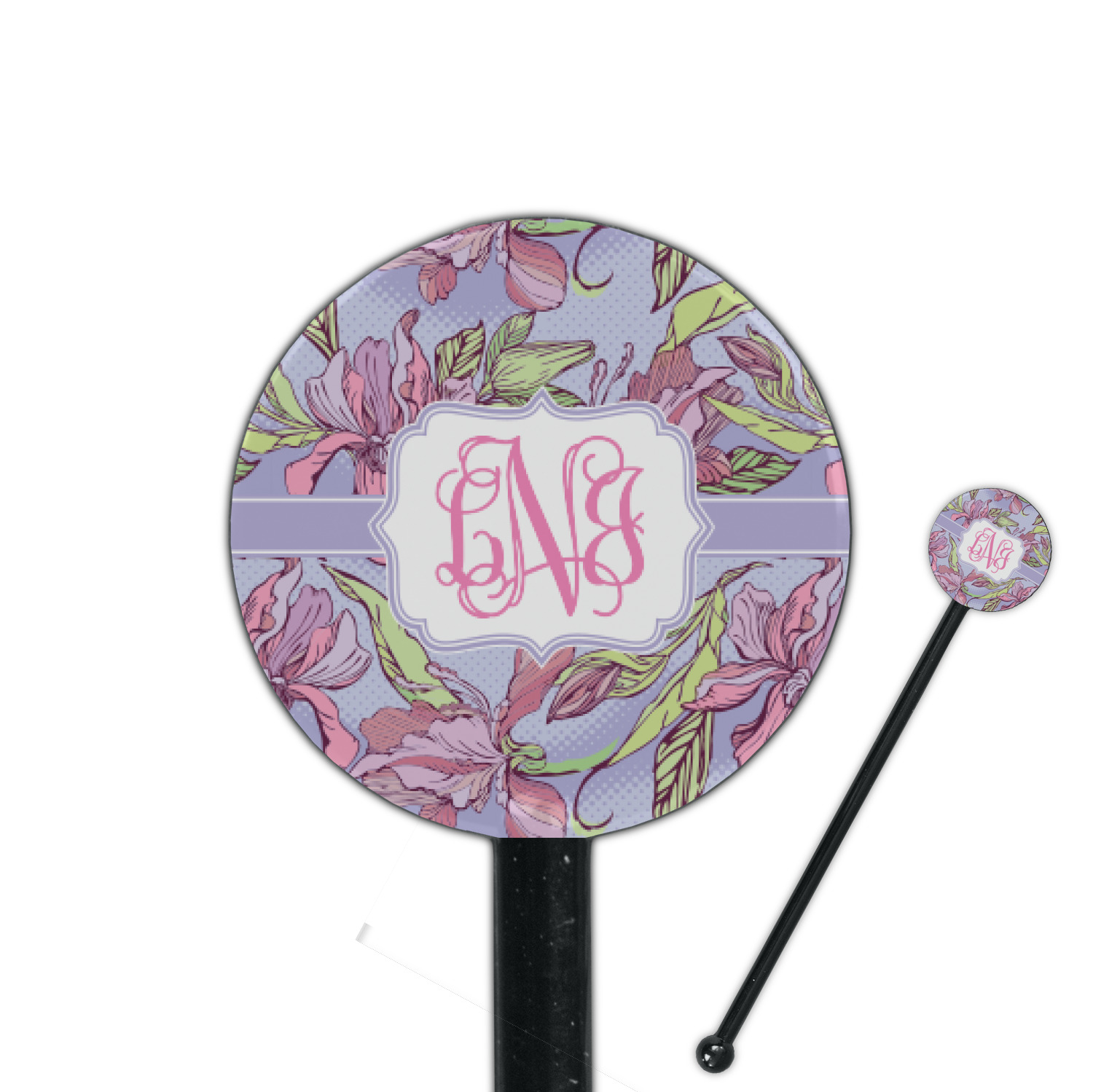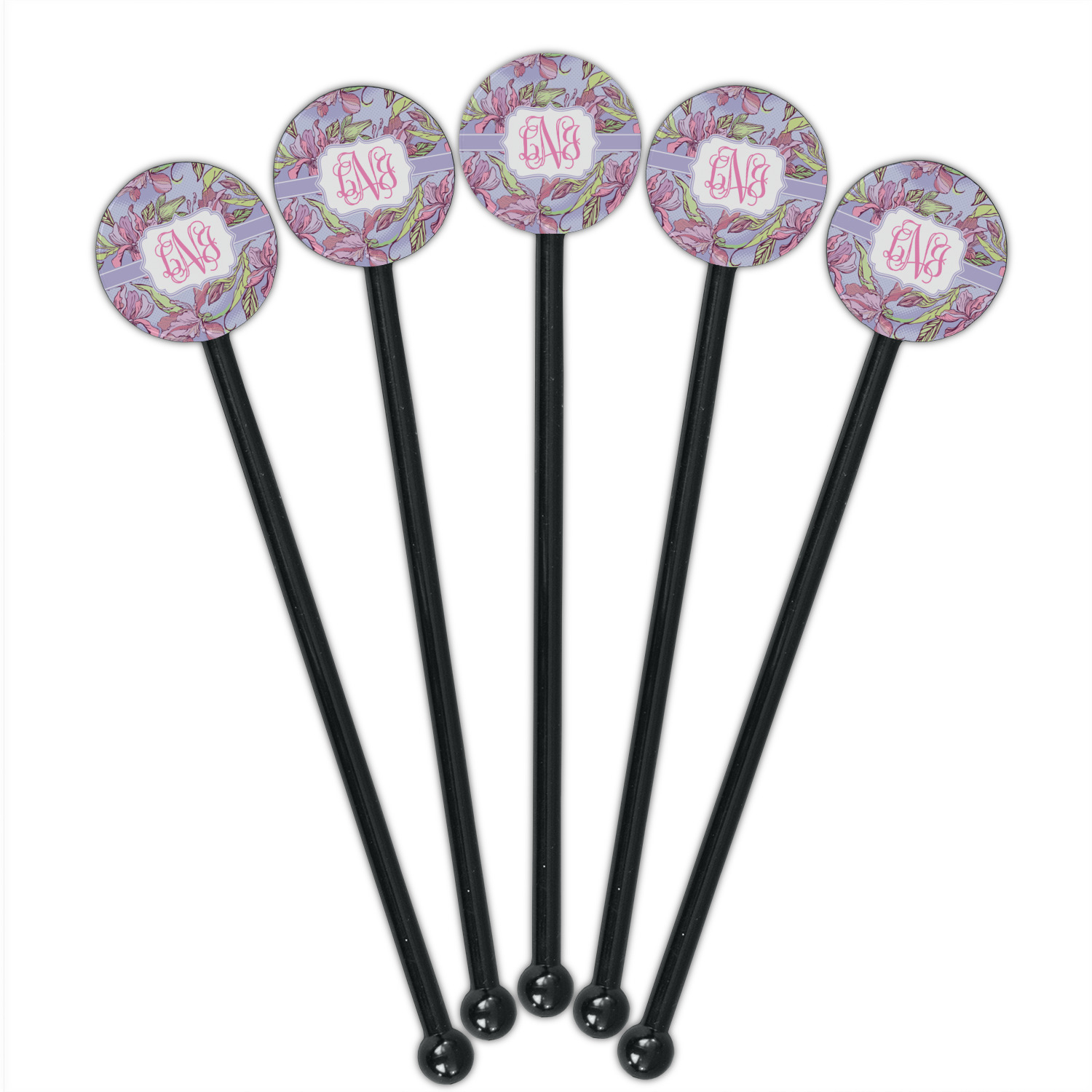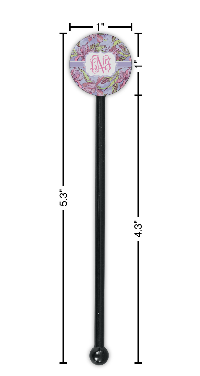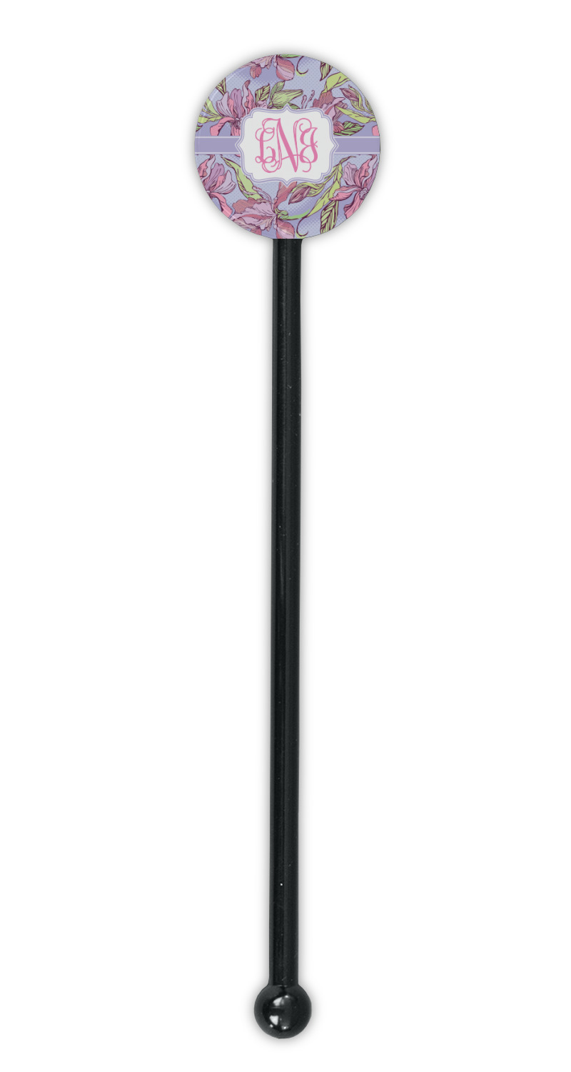 Orchids Designs for 5.5" Round Plastic Stir Sticks - Black - Single-Sided