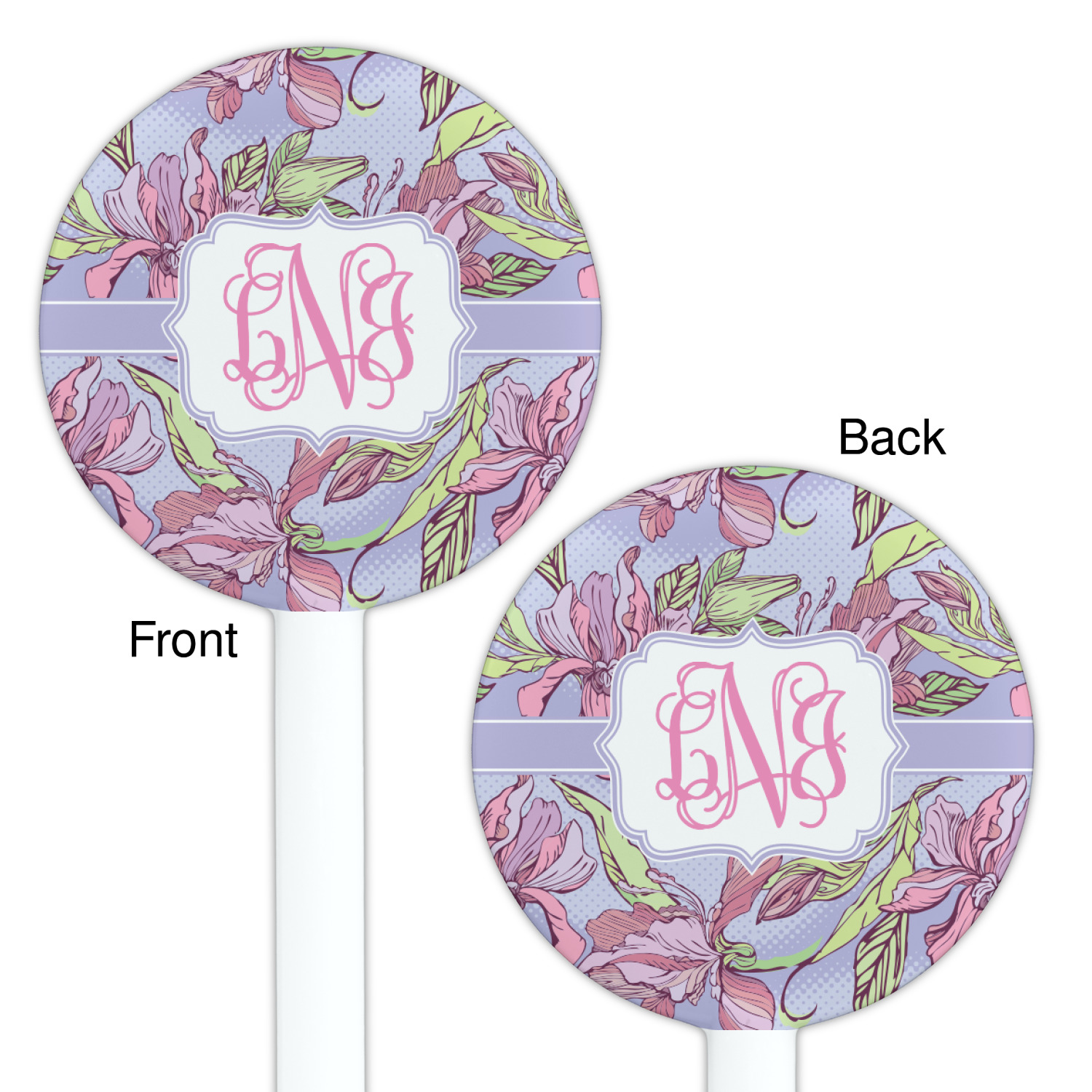 Orchids Designs for 5.5" Round Plastic Stir Sticks - White - Double-Sided