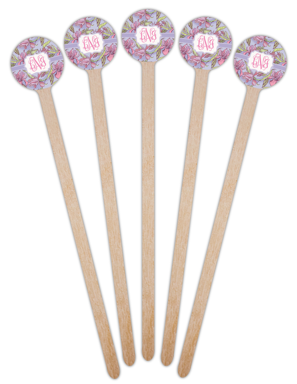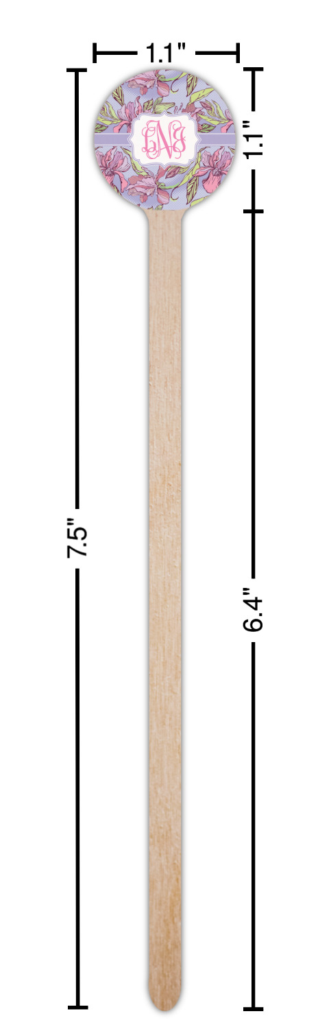 Orchids Designs for 7.5" Round Wooden Stir Sticks - Single-Sided