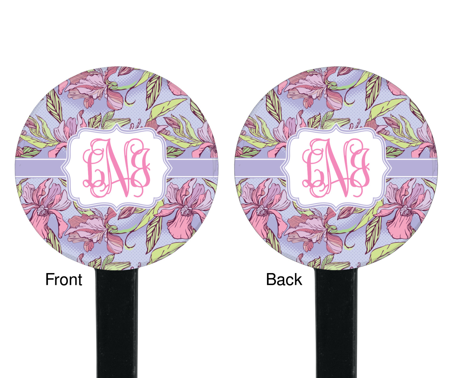 Orchids Designs for 7" Round Plastic Stir Sticks - Black - Double-Sided