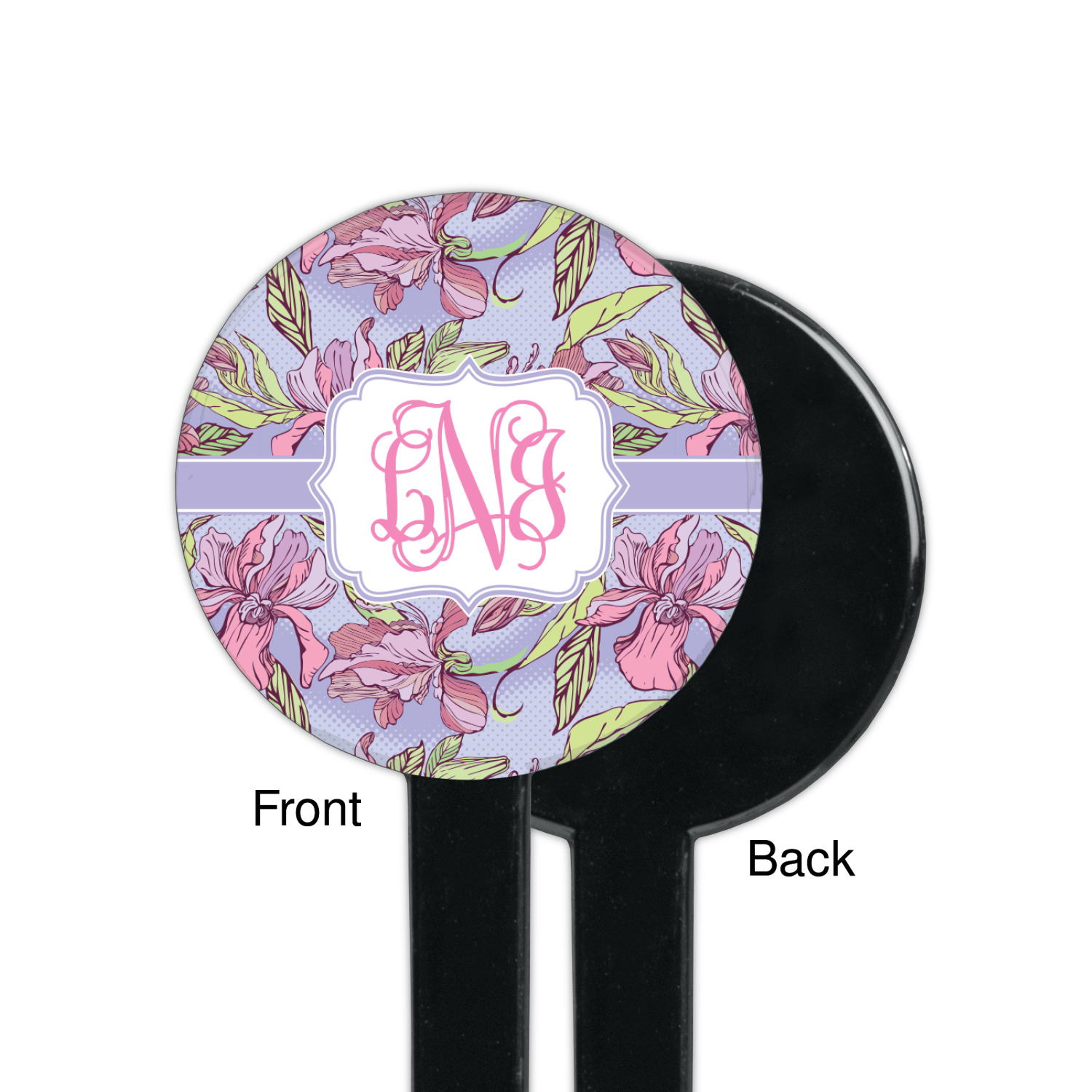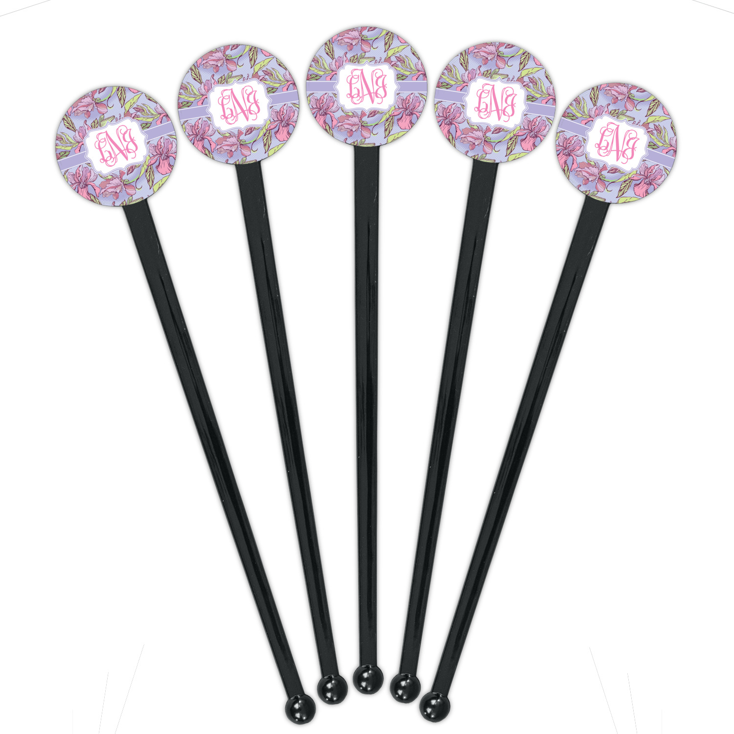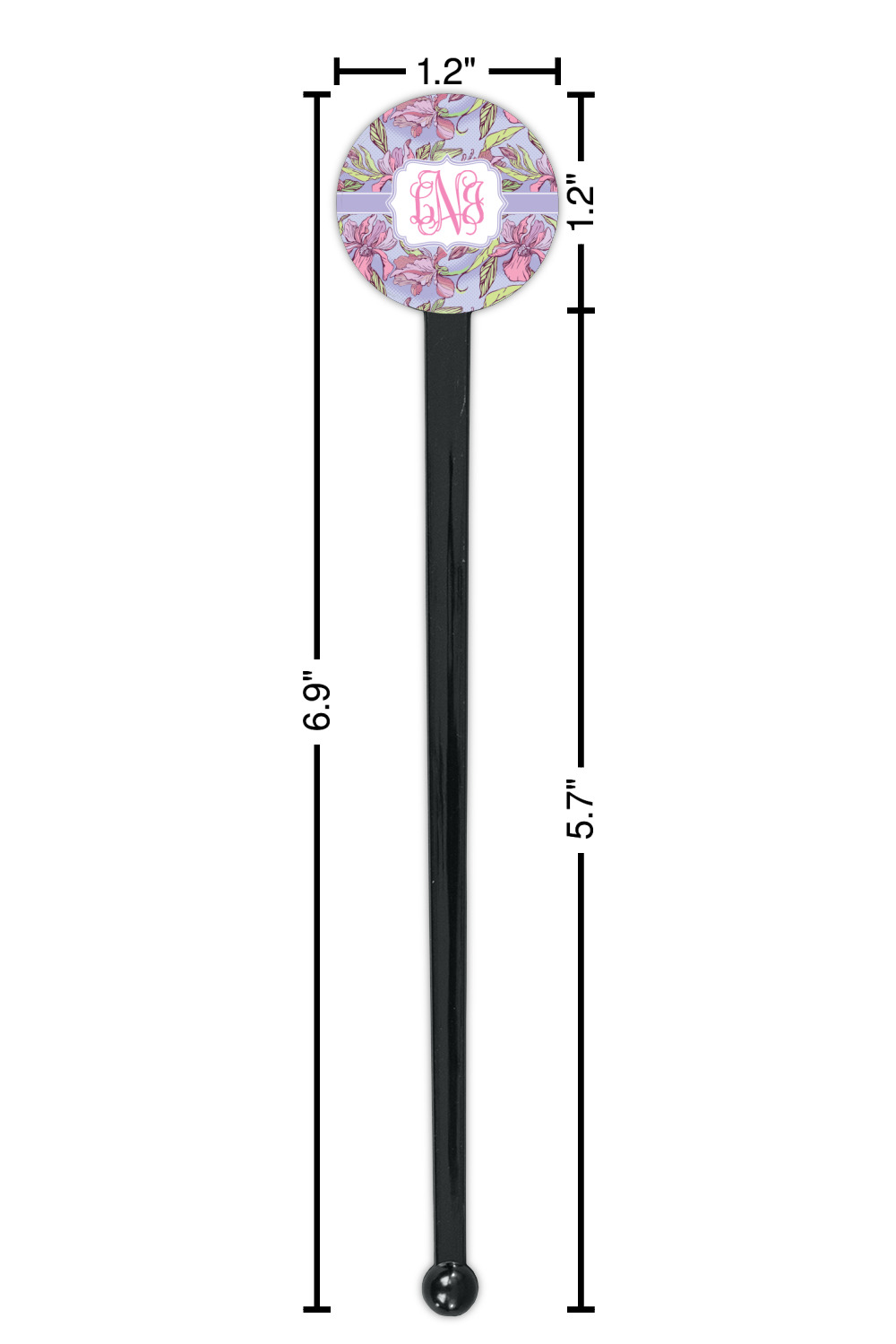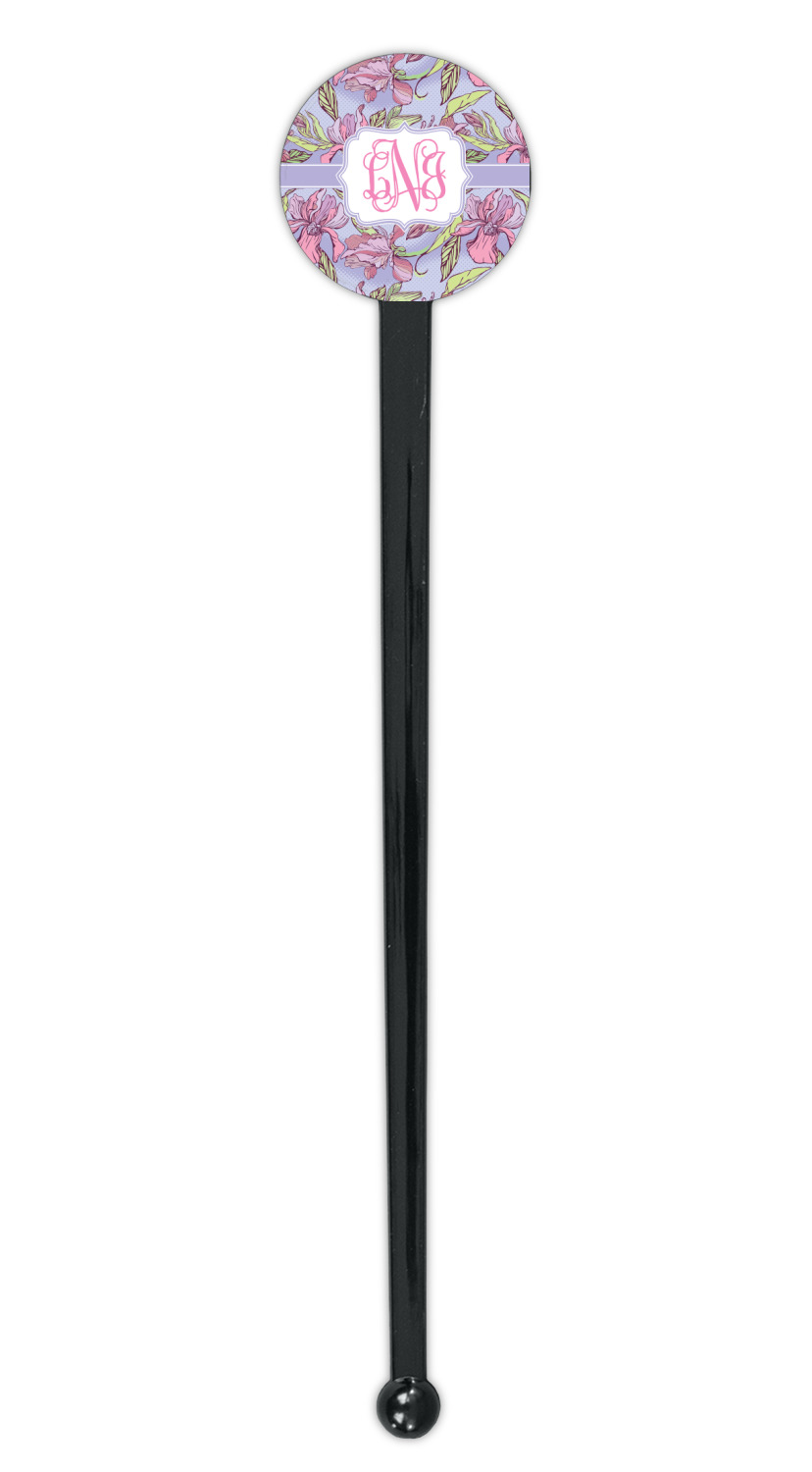 Orchids Designs for 7" Round Plastic Stir Sticks - Black - Single-Sided