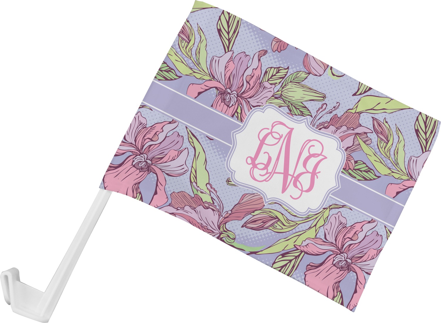 Our personalized flags are made from a durable, yet lightweight cloth that will proudly bear your logo or design of choice, while withstanding the outside elements. We have two size options - 8" x 11" and 11" x 15". Both come with a flag pole which includes a clip that secures the pole to the side window, whether it is rolled up or down. The flags are printed on both sides to display your design from all directions.