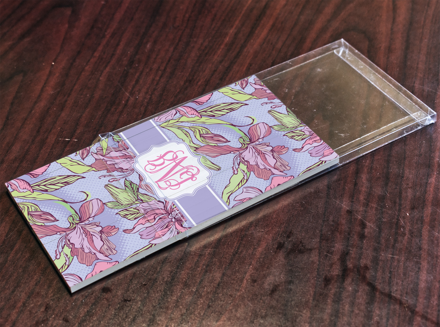 This Orchids design oozes simple elegance in its soft colors of lilac and pink. The flowers are a beautiful combination of pinks and purples, set on a textured light purple background. The leaves are a soft green.
