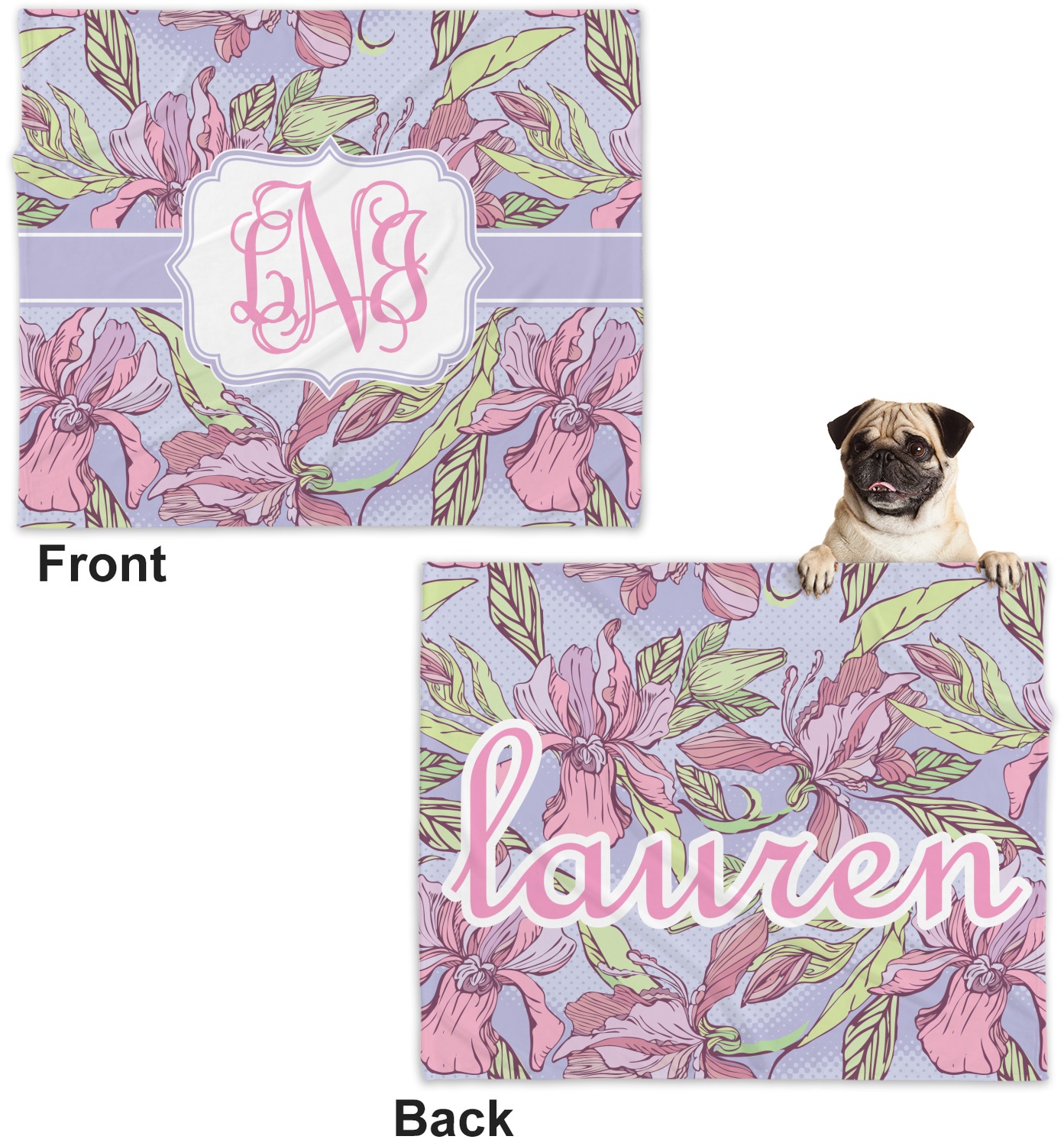 These dog blankets are crafted from a gentle, soft-to-the-touch, minky material. We print your customizations, either matching or differing, on both the top and underside of the blanket. These personalized dog blankets are available in two sizes: regular and large. Our regular size, at 40" x 30", accommodates small and some medium size dogs. At 60" x 50", our large dog blanket is a better fit for bigger breeds. Though specialized for dogs, these blankets still make a thoughtful gift for your favorite feline, or any other pet in mind!