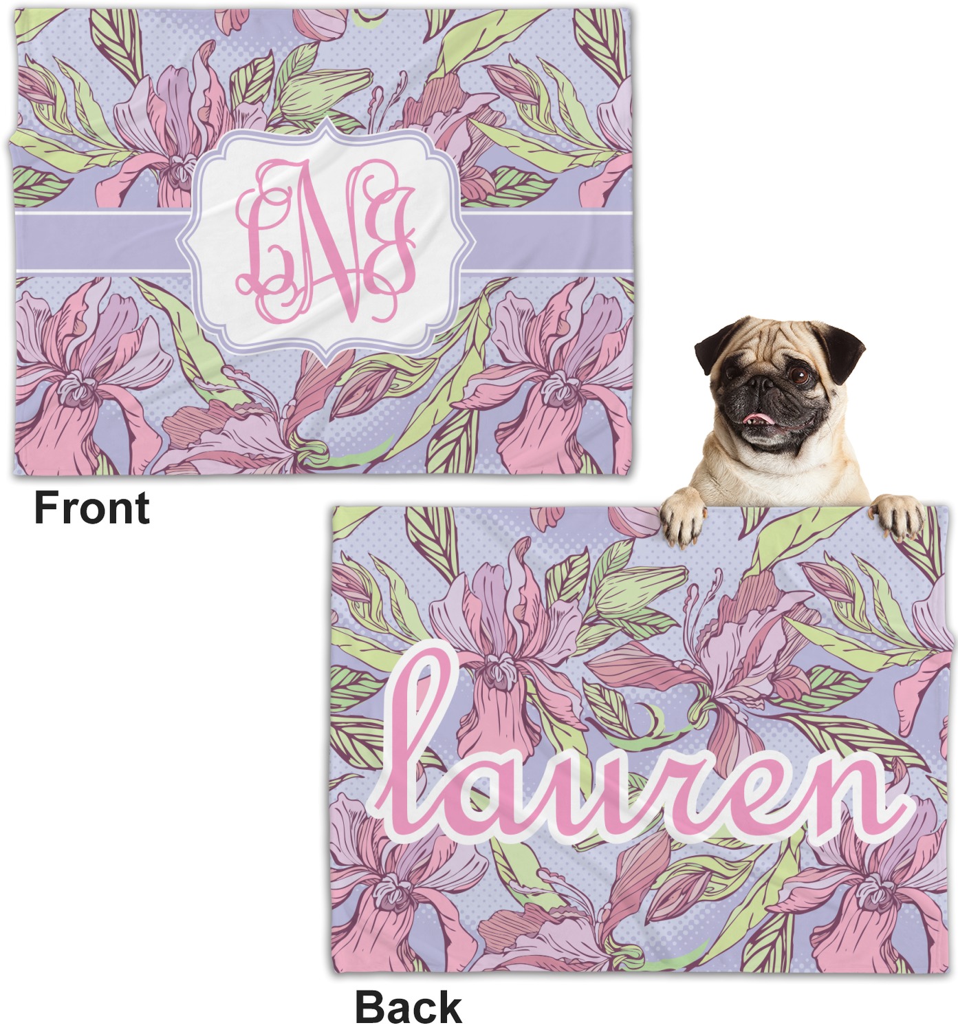 These dog blankets are crafted from a gentle, soft-to-the-touch, minky material. We print your customizations, either matching or differing, on both the top and underside of the blanket. These personalized dog blankets are available in two sizes: regular and large. Our regular size, at 40" x 30", accommodates small and some medium size dogs. At 60" x 50", our large dog blanket is a better fit for bigger breeds. Though specialized for dogs, these blankets still make a thoughtful gift for your favorite feline, or any other pet in mind!