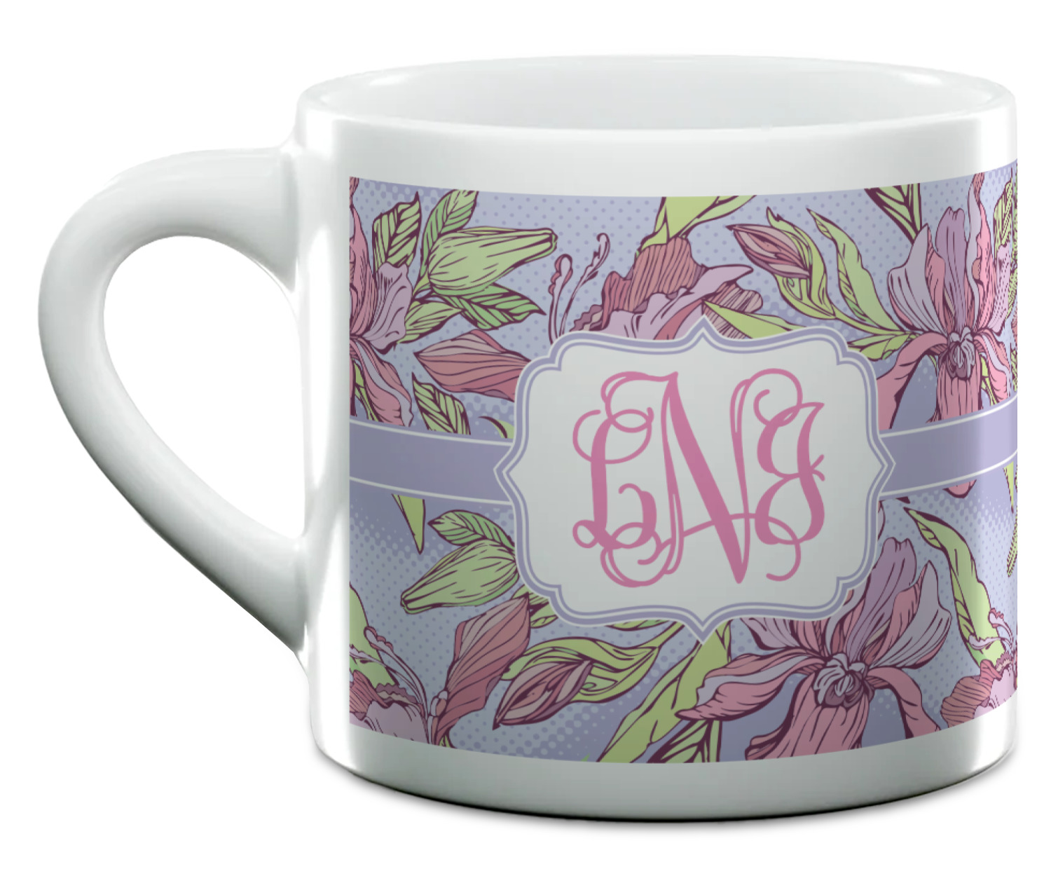 Each of our espresso mugs is a ceramic material sure to keep your drink warm. Personalize one cup for yourself, or order a set of 4! Its the perfect little gift for any coffee lover! We carry two sizes for you to personalize - 3 oz. (approx. 3.25" x 2.325" x 2.625") or 6 oz. (approx. 4" x 2.9" x 2.9"). Our 3 oz. mug is perfect for that single shot espresso while our 6 oz. mug can be your next favorite cappuccino cup holding two shots of espresso!