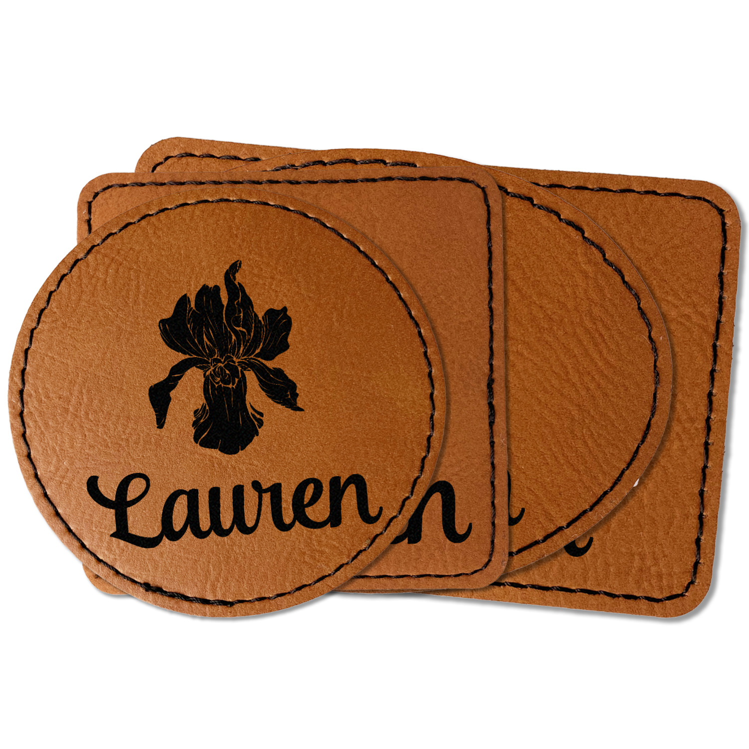 Our leather patches come in 4 different shapes - Square (3" x 3"), Round (3" x 3"), Oval (3.5" x 2.5"), Rectangle (3.5" x 2.5") and a beautiful rich brown rawhide or cognac color.