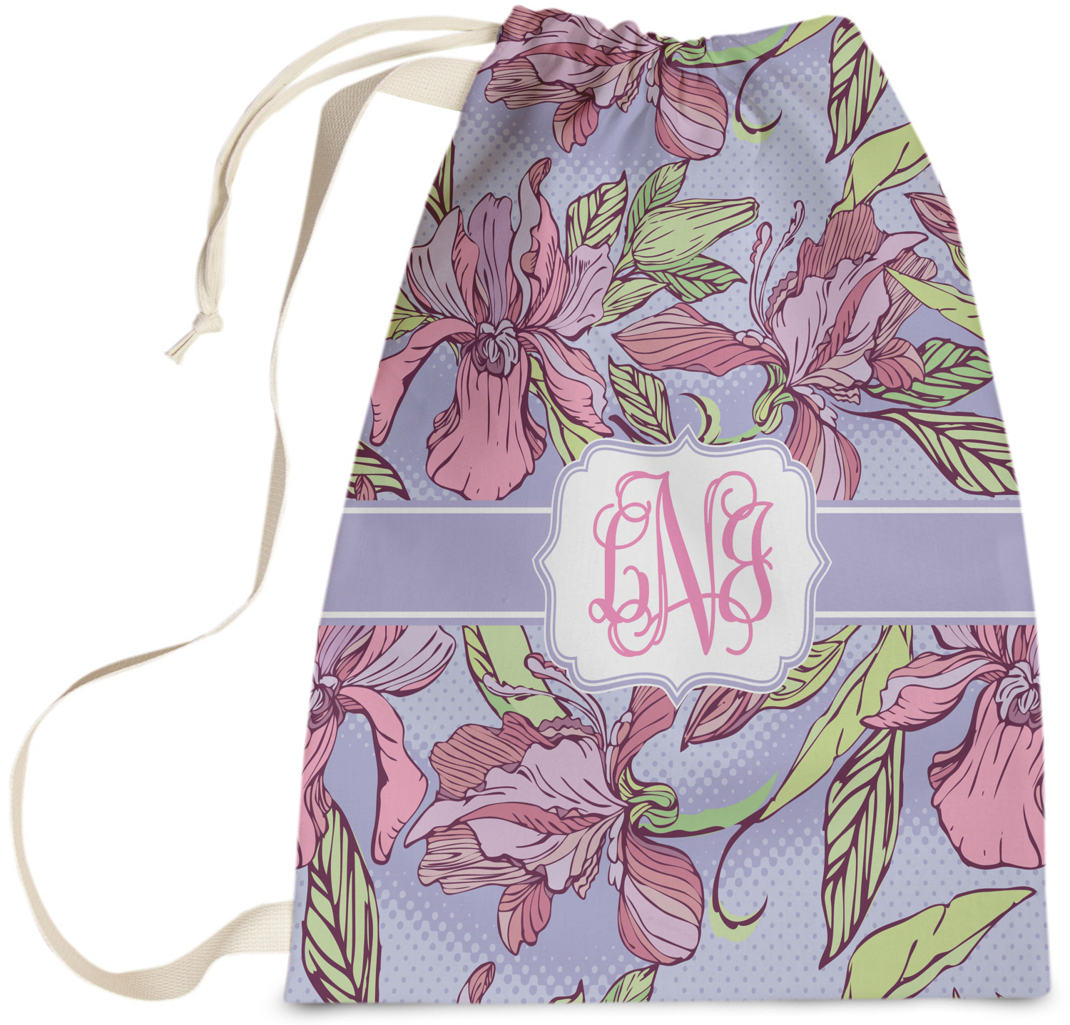 Carry your laundry in style with these customized laundry bags. Available in two sizes, featuring a natural colored woven strap and a cinch cord, these bags hold a lot of clothes or anything else you want to fit in them.