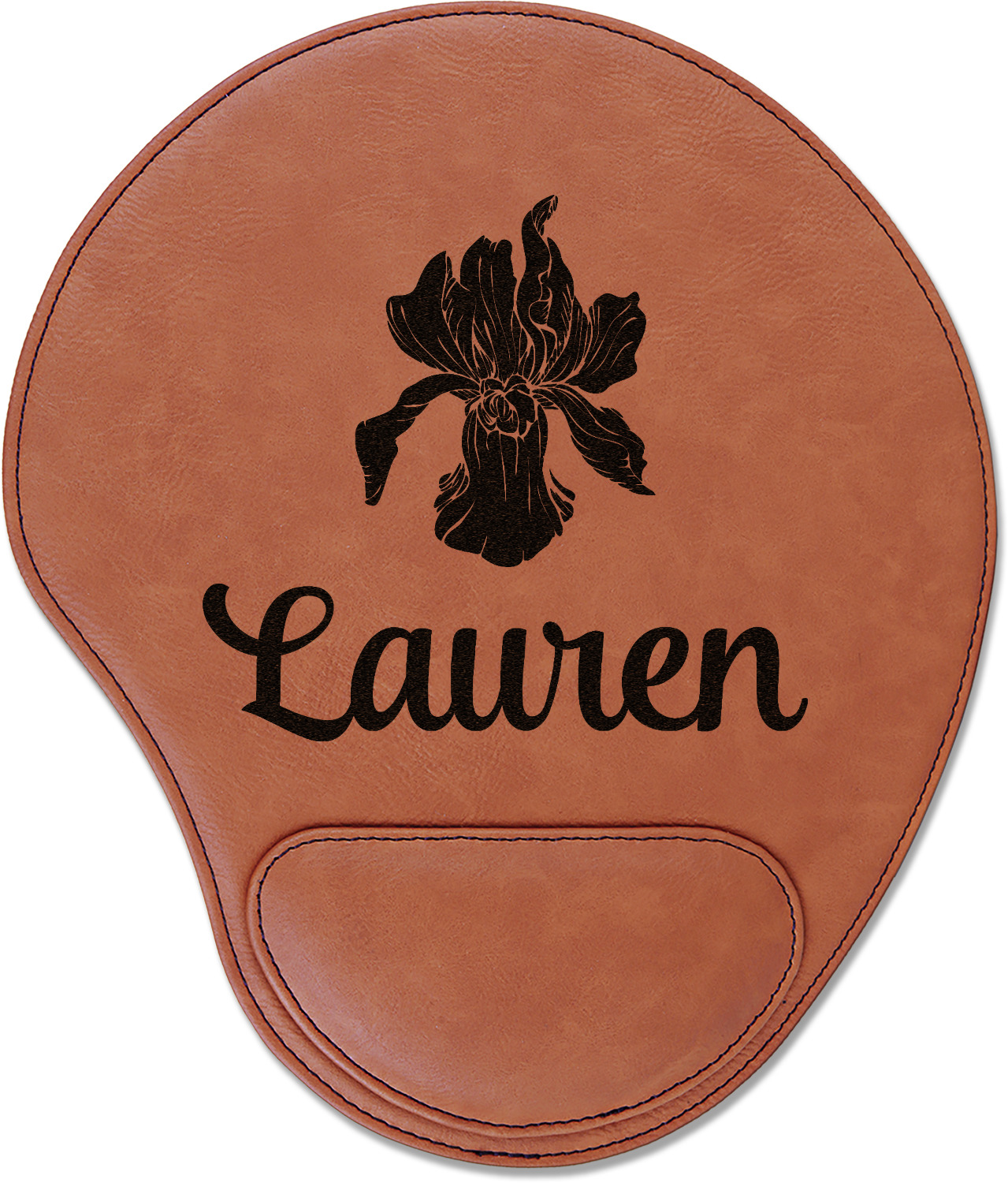 In a rounded shape, this mouse pad is made of a luxurious, cognac-colored leatherette. The nature of this material allows your mouse to glide smoothly across its surface. Strong stitching lines the edges to guarantee stability and strength. As added support for tired wrists, your personalized mouse pad features a supportive wrist rest at its bottom. This model measures at 10.25" x 9", while its wrist pad is approximately 5" x 2.75", with a thickness of 0.75". Your personalized design is laser engraved into the front face of this mouse pad.