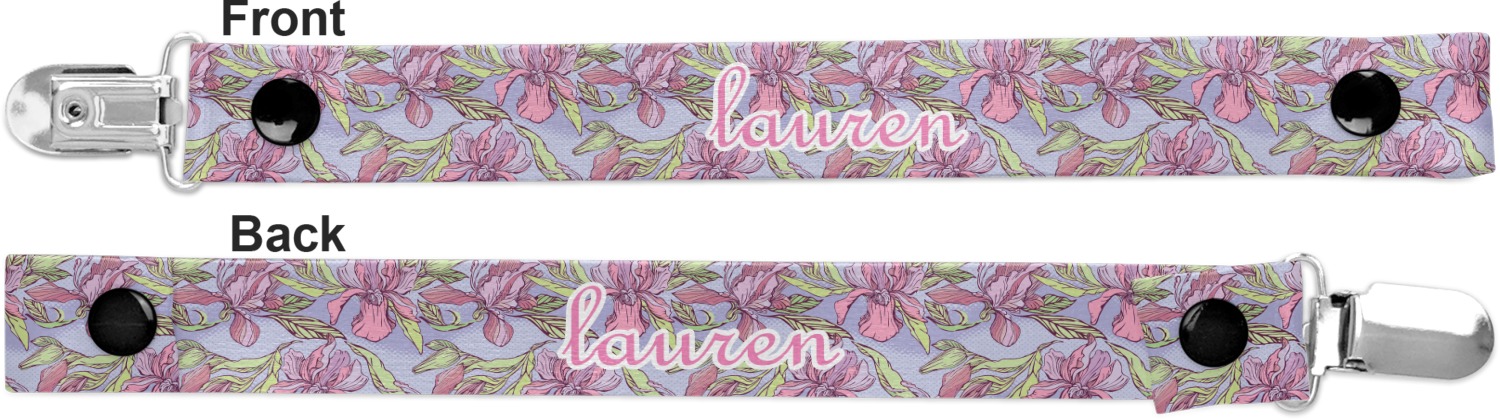 This personalized pacifier clip is the ideal size and measures at approximately 7.5 inches in length, when either end is snapped closed. On one end, you'll find a snap button. This button of your baby's pacifier holder is what can be attached to their pacifier to hold is securely in place. Simply open the snap, slip it through the pacifier opening, and snap it back into place. On the opposite end of this baby pacifier holder, you'll find a metal clip that can secure to a baby's collar or sleeve. This clip ensures that the strap stays in place, and that your baby's pacifier is always on hand.