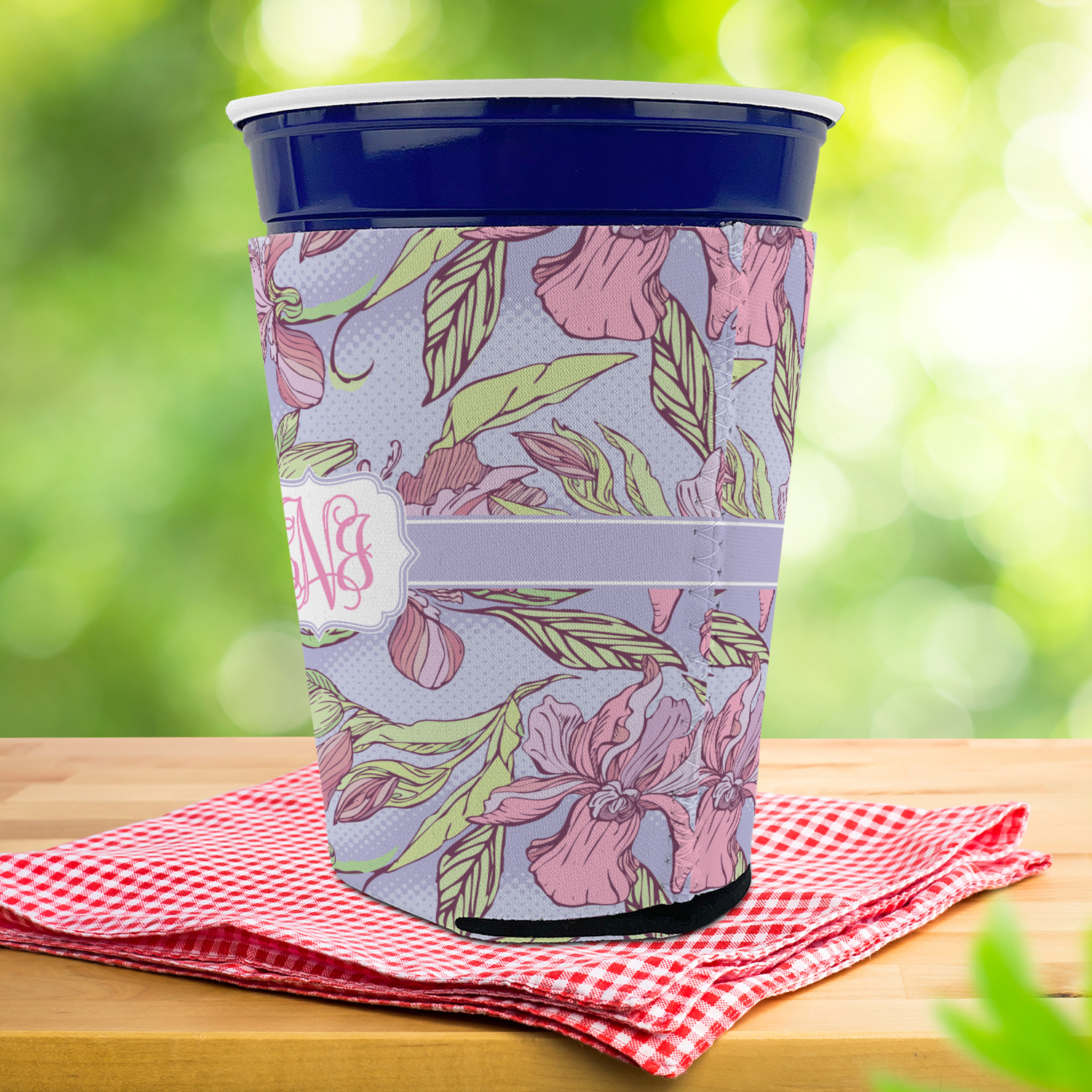 Made from neoprene with a polyester outer fabric and sewn seams, these premium quality party cup sleeves are very durable and will hold up to heavy use. They are available in 2 styles - with a bottom or just a sleeve to go around the outside of the tapered cup. The sleeve covers are about 4" tall and cover about 90% of the classic 16 oz. Solo cup.