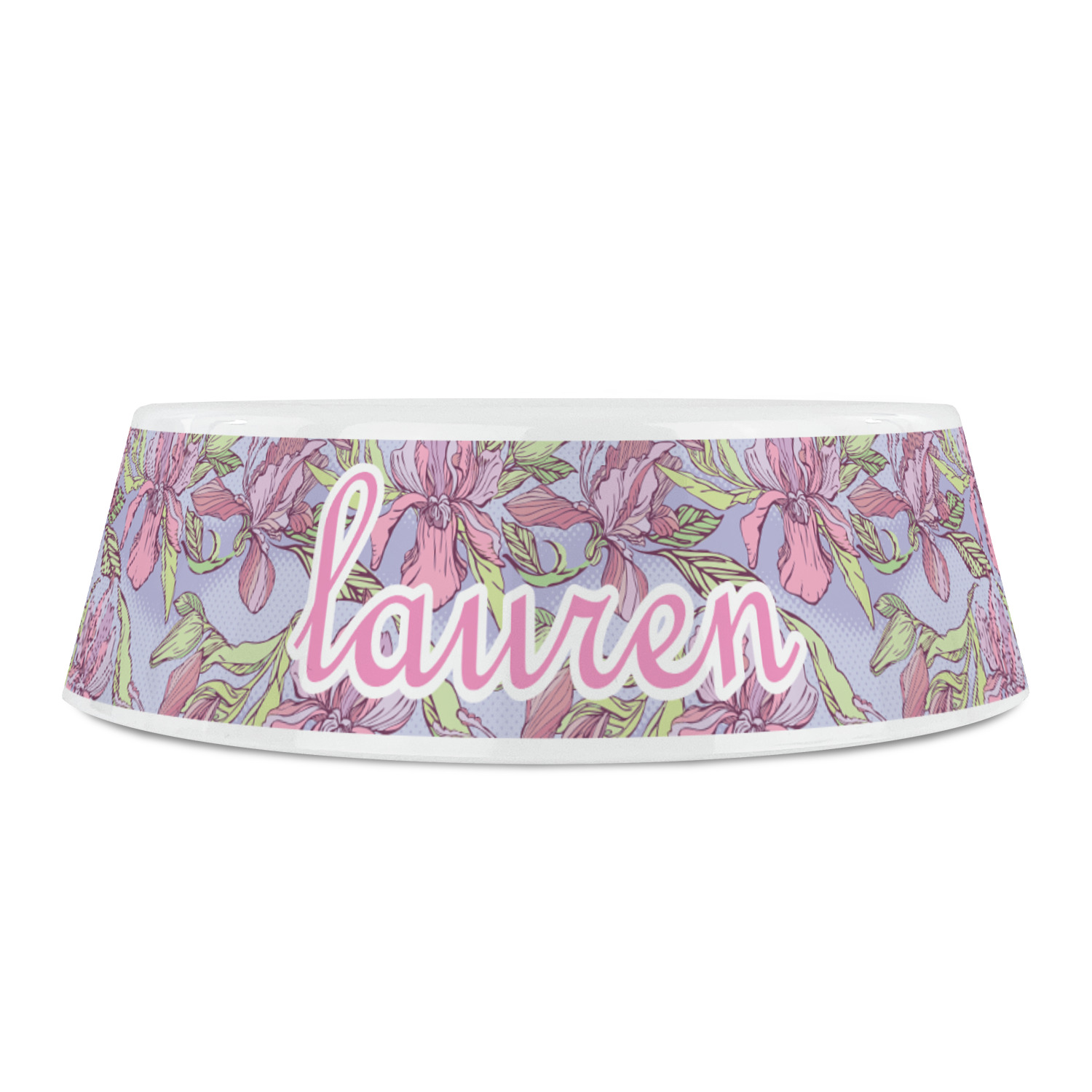 The ribbon and label are coordinated in the soft lilac, while the personalization is done in the darker pink.