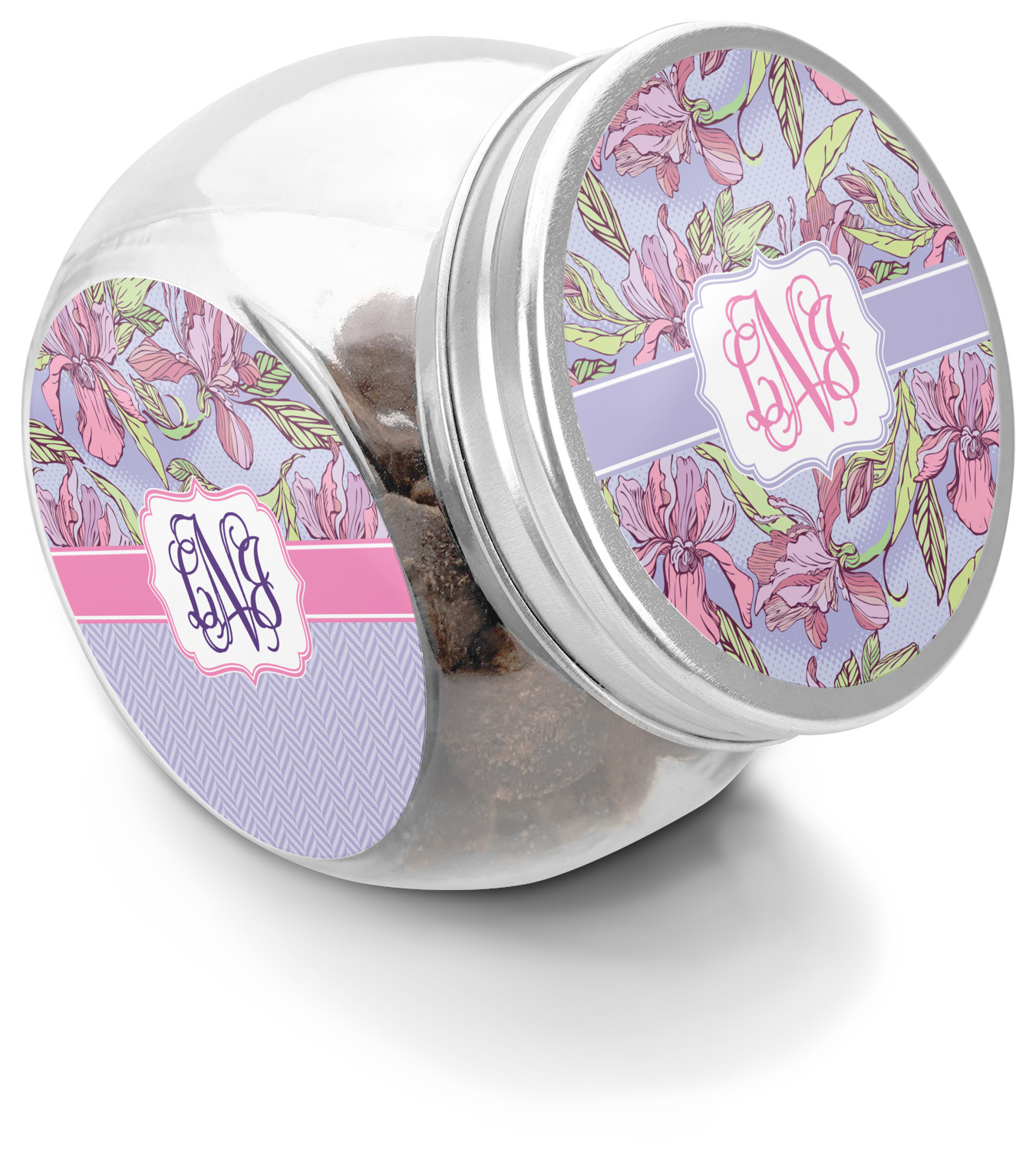 This treat jar is an excellent way to store treats for your favorite canine or feline. Moreover, their delicate, classy appearance makes them a tasteful addition to your countertop's décor. Crafted from clear glass, its unique construction and silver metal, screw-on lid allows for quick and easy access. Three, permanent, vinyl stickers are applied to both sides of the jar and lid, presenting your personalized design. The base of this glass, dog treat jar is 3.4" x 4.75", and the jar stands at 5" tall. Though on the smaller side, this jar is best suited for smaller treats or training treats.
