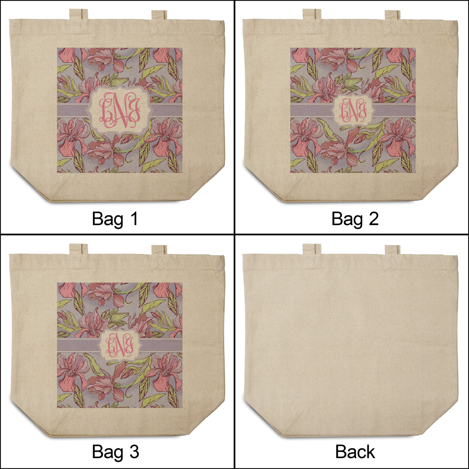 Orchids Designs for Reusable Cotton Grocery Bags - Set of 3