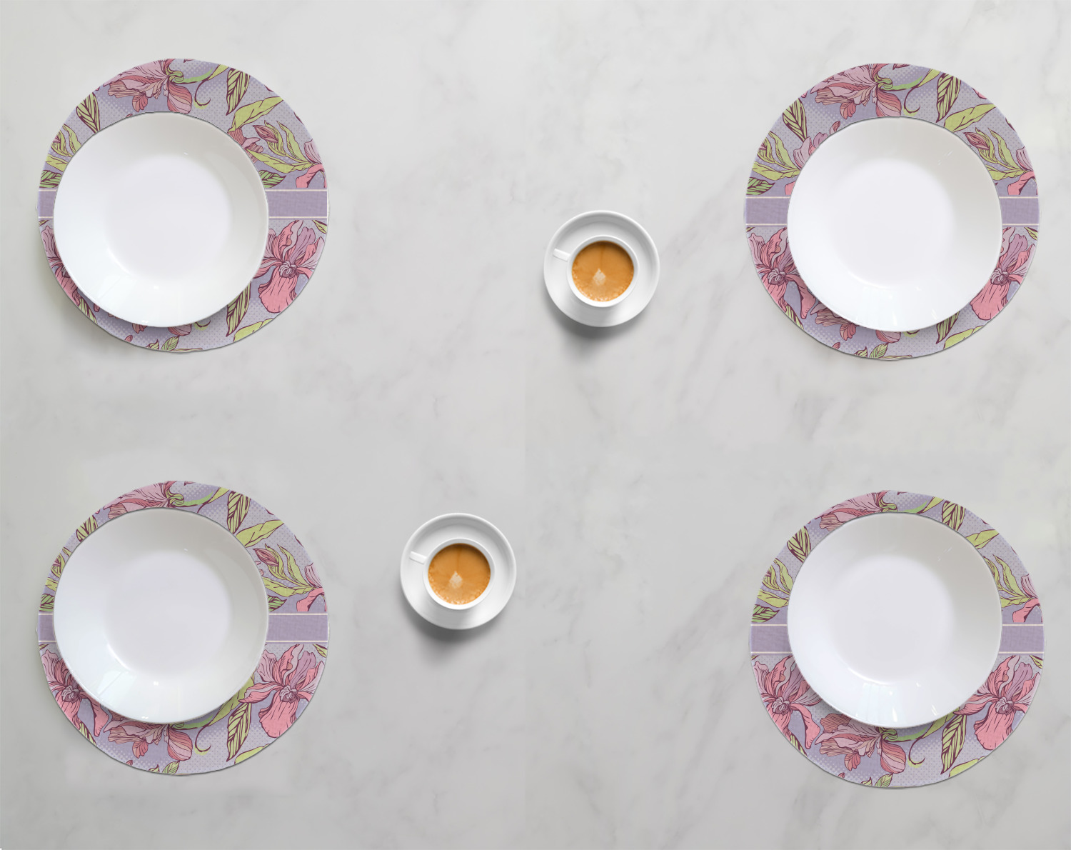 This Orchids design oozes simple elegance in its soft colors of lilac and pink. The flowers are a beautiful combination of pinks and purples, set on a textured light purple background. The leaves are a soft green.