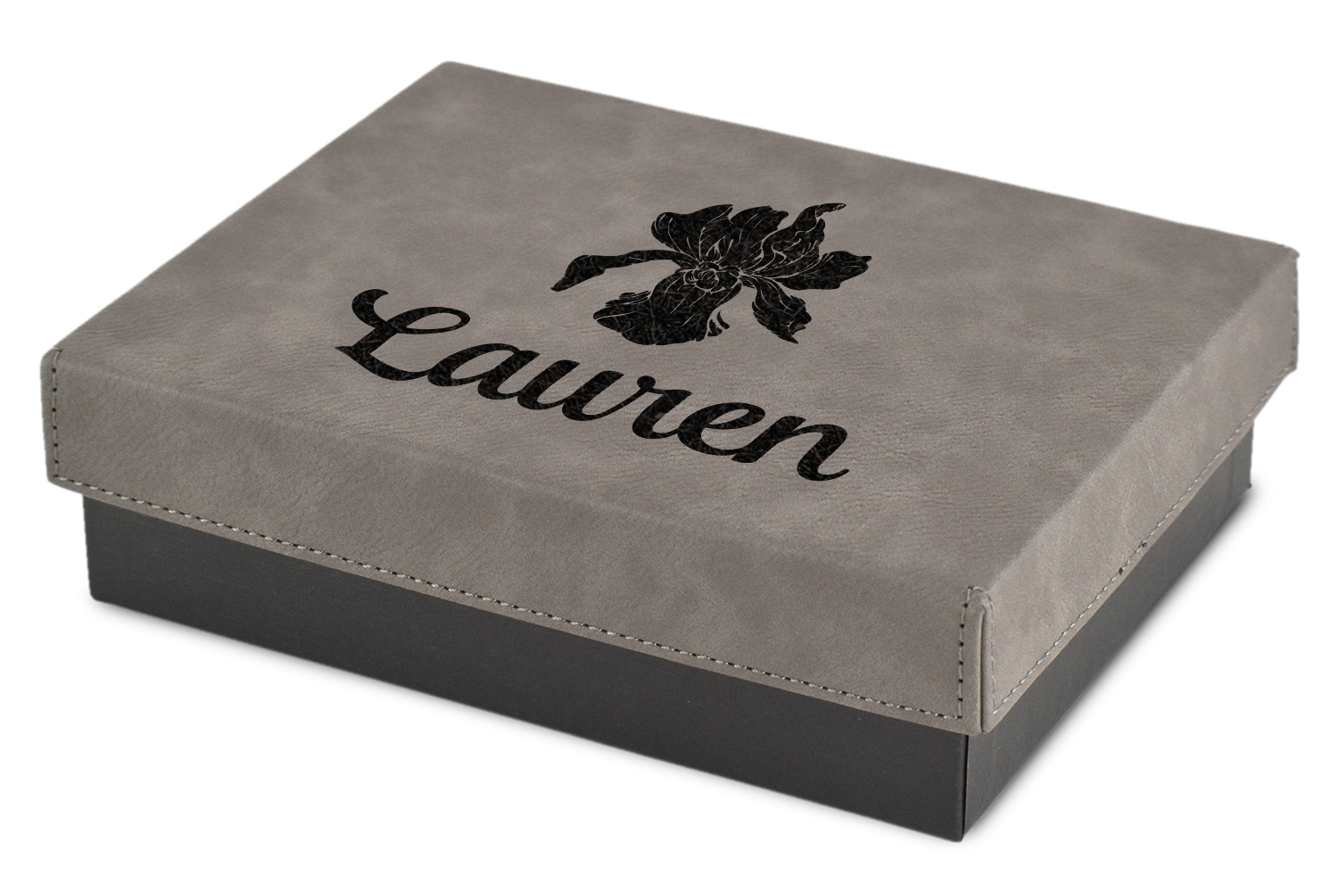 These gift boxes are available in 3 different sizes to accommodate various sized gifts. Available in gray as a neutral color for any occasion as well as to showcase your design boldly. Engraved with a laser this high quality paper board and faux leather gift box is unique and makes any gift stand out.