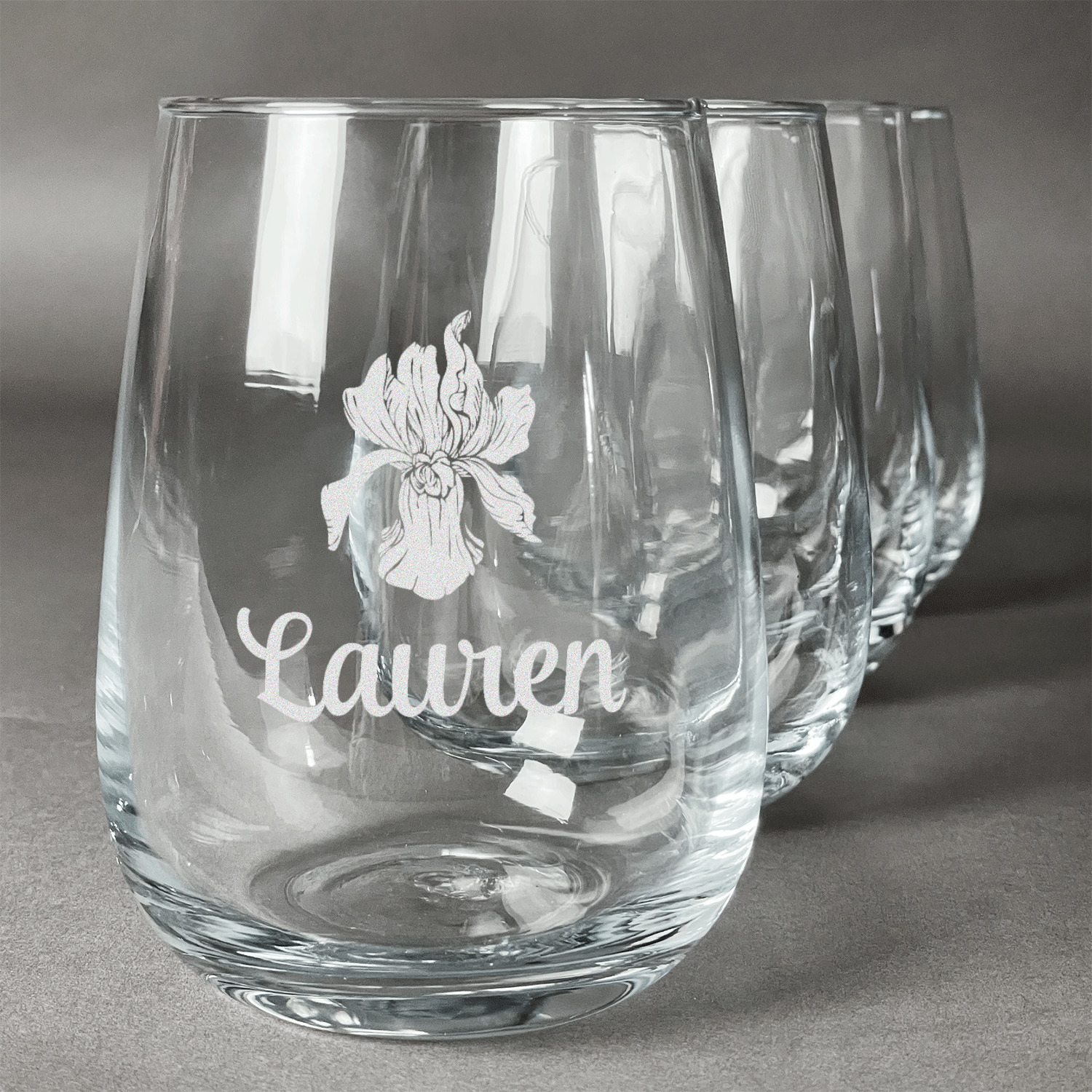 Our customization system makes it easy for you to design each glass. You can engrave your glasses with Name/Text, Name & Initials, Monograms (many styles available) or even graphics and text. We have a huge collection of fonts and graphics for you to choose from.
