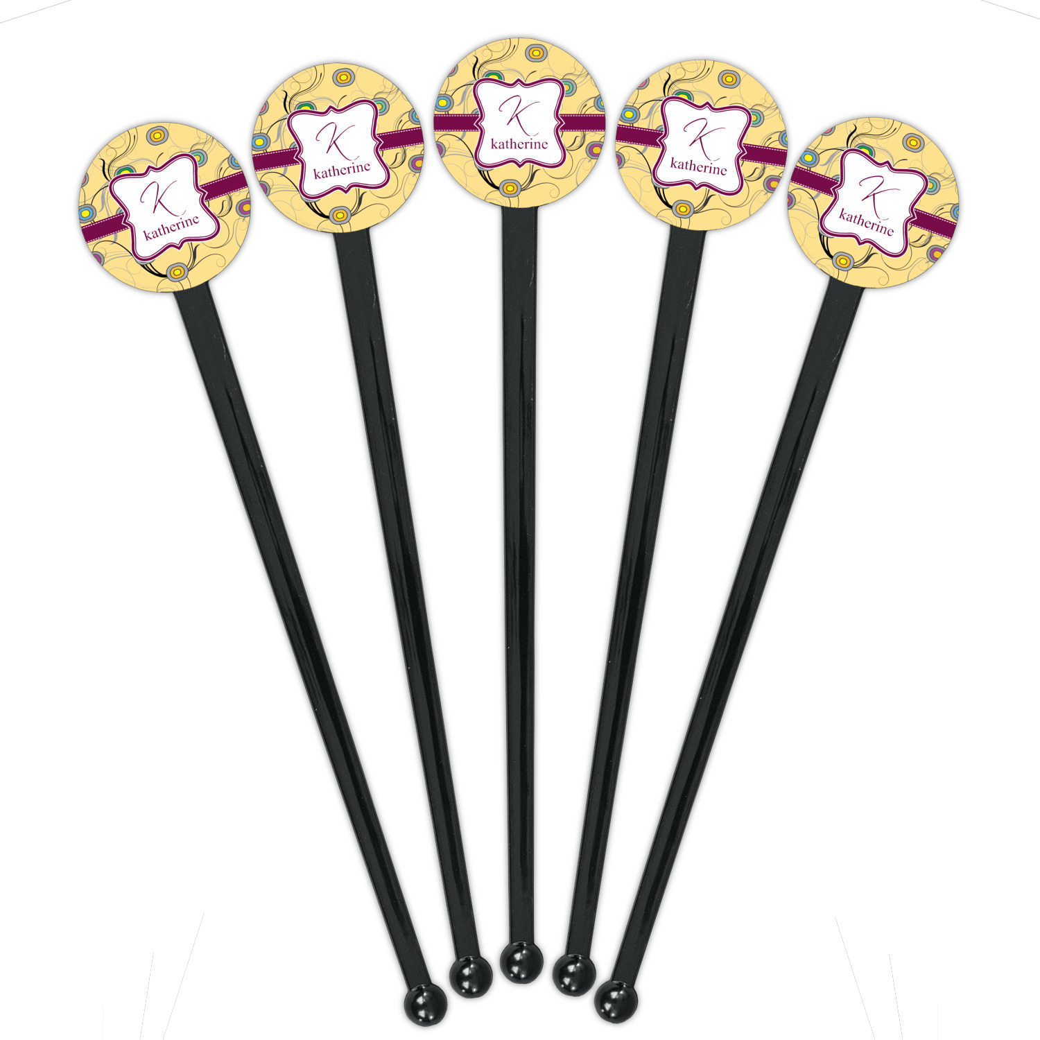 Shape + Symbol Designs for 7" Round Plastic Stir Sticks - Black - Single-Sided