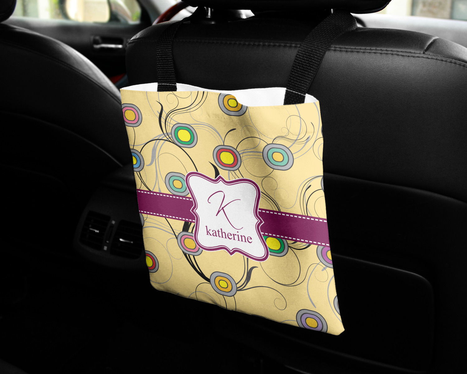 These car back seat organizers are sturdy tote-like bags, fabricated from a robust polyester, and features a single handle on the back side. The strap features an attachable velcro for easy attachment to headrests, grocery carts, car seats, and more. Simply undo the velcro, loop the strap around the headrest, reattach the velcro, and let the organizer hang from the front seat. These car organizers are the perfect means of increasing your backseat's legroom, while storing multiple items in one place for better accessibility. Each car back seat organizer measures at 10 by 10 inches, and features your personalized design printed across its front and back.